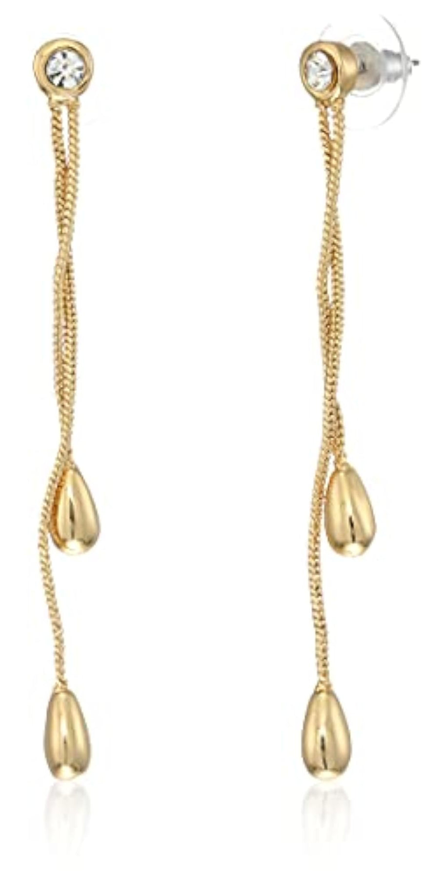 Elegant chain drop earrings featuring Austrian crystals, plated with 24Kt gold.