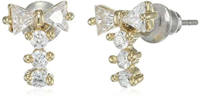 Elegant bow tie stud earrings featuring 24Kt gold plating and sparkling American diamonds.
