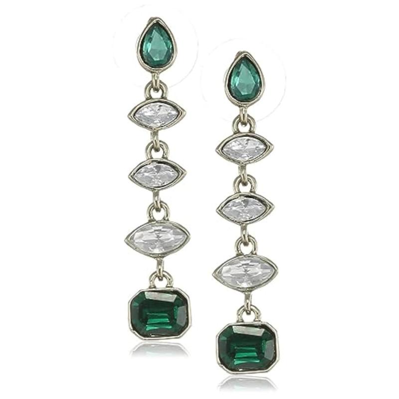 Elegant and stylish marquise dangle earrings plated with 24Kt gold and adorned with emerald stones.