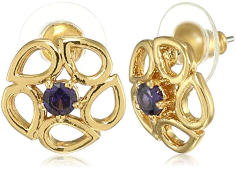 Add a touch of elegance with these stunning 24Kt plated stud earrings featuring American diamond and ruby details.