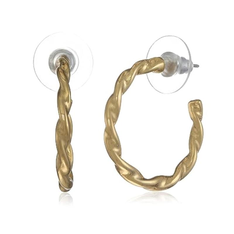 Elevate your style with these chic 24kt plated twisted bar hoop earrings.