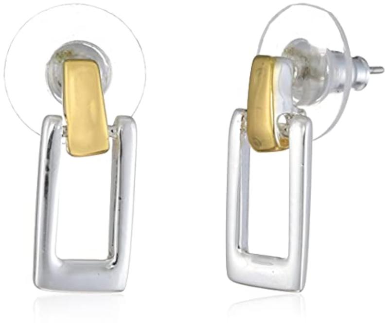 Add elegance to your look with these stunning stud earrings plated with 24Kt gold and rhodium. Perfect for any occasion.