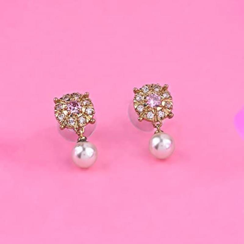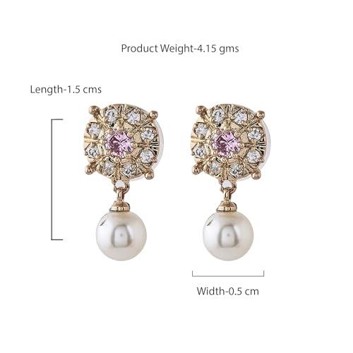 Elegant earrings with 24Kt gold plating, American diamond embellishments, and a stunning pearl drop.