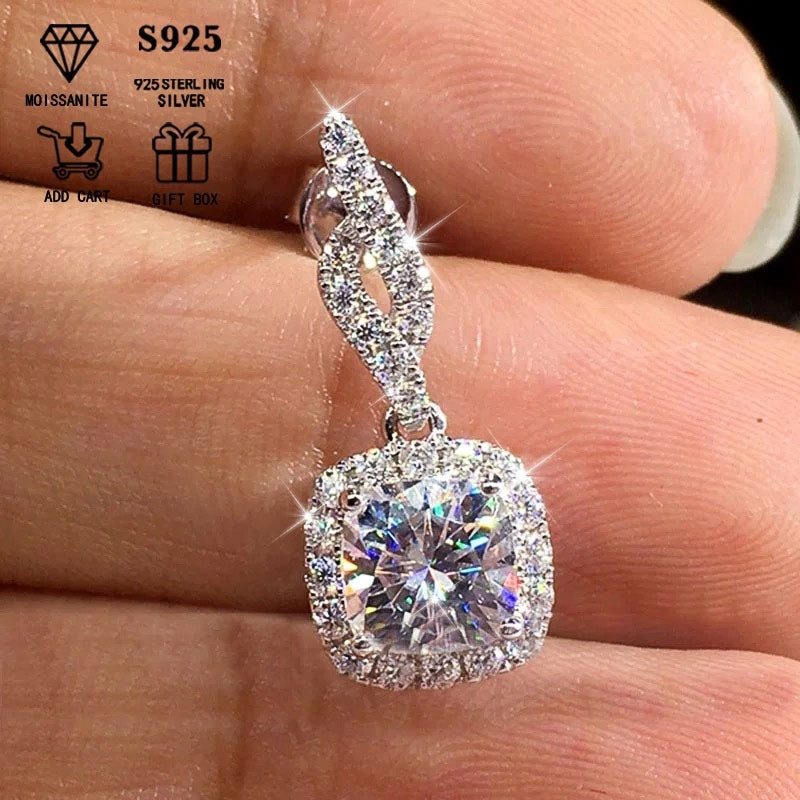Stunning 2ct Moissanite drop earrings crafted in hypoallergenic S925 sterling silver. Perfect anniversary gift for her!
