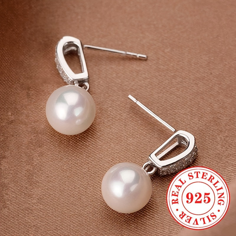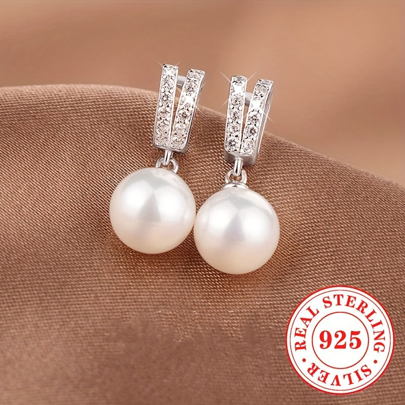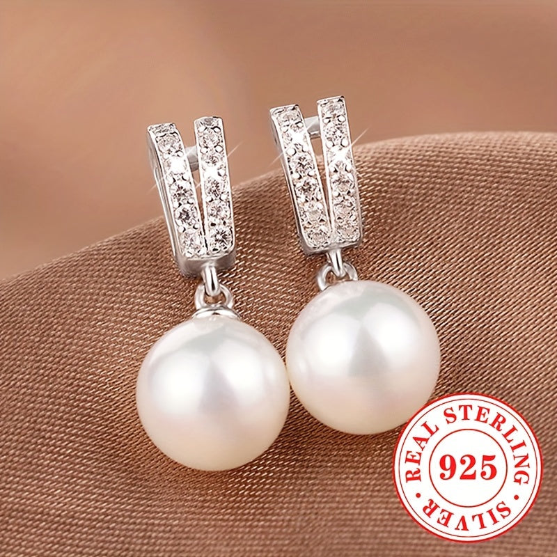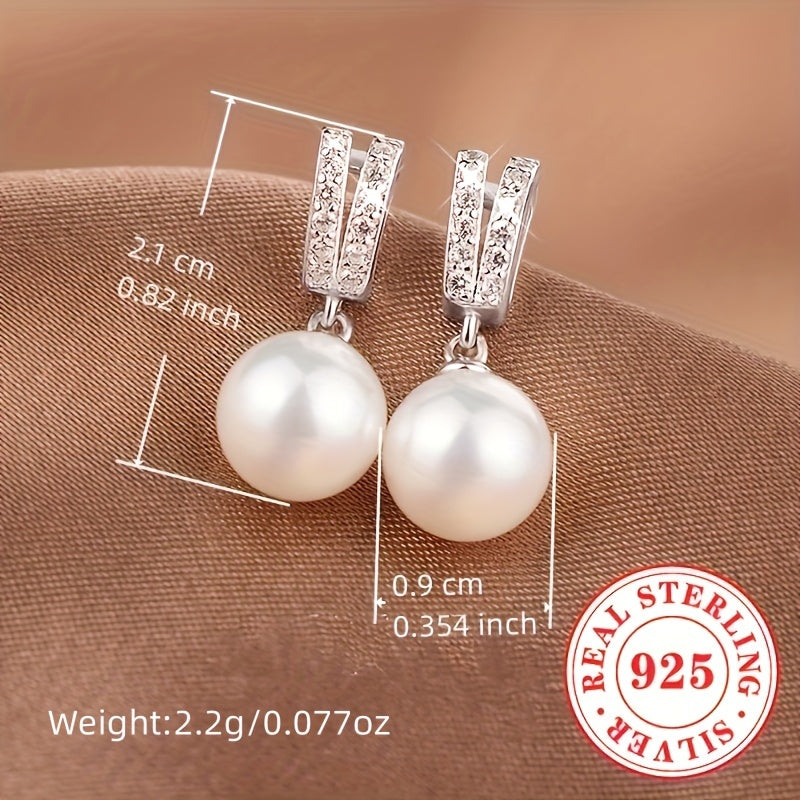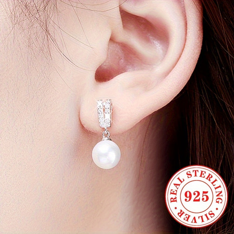 Elegant and stylish dangle earrings made of pure silvery with imitation pearl pendant. Perfect for weddings and special occasions.