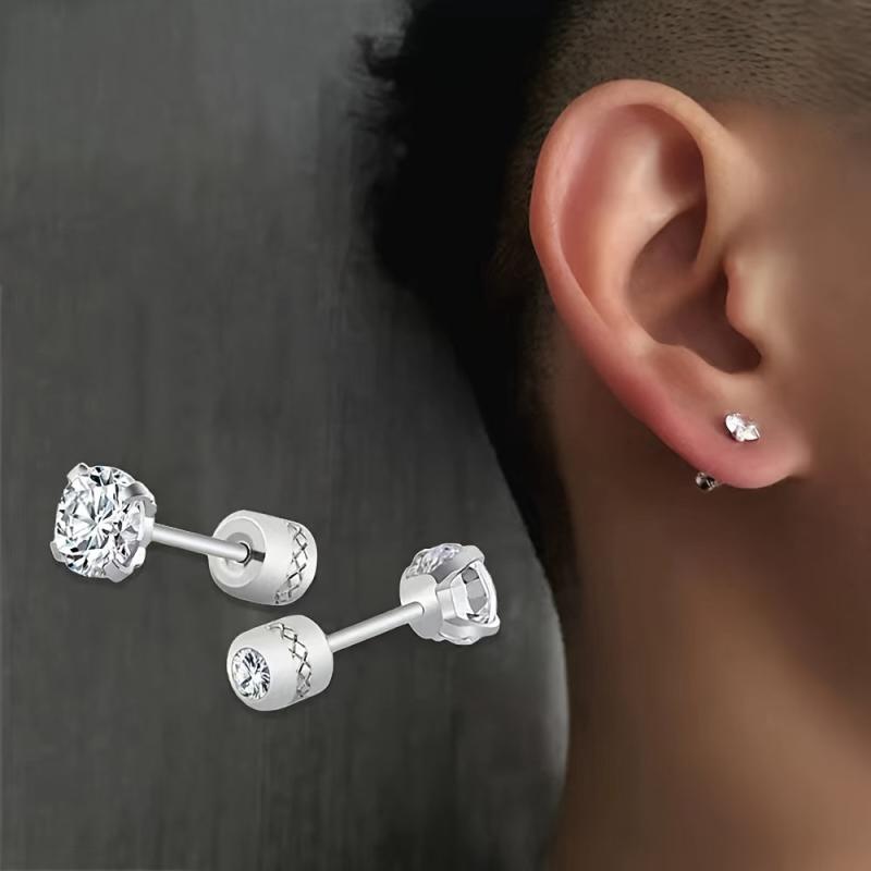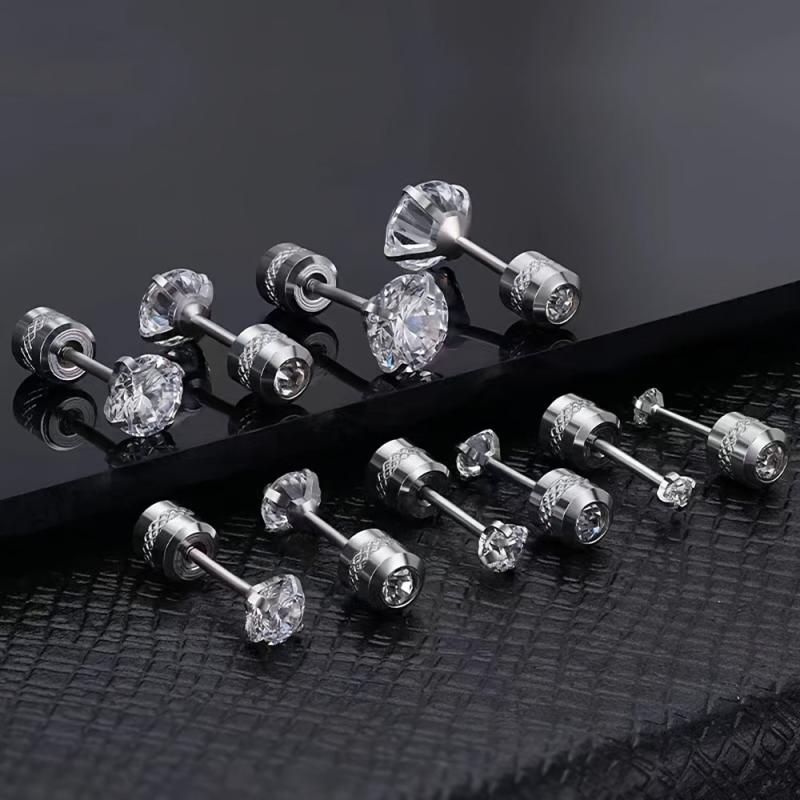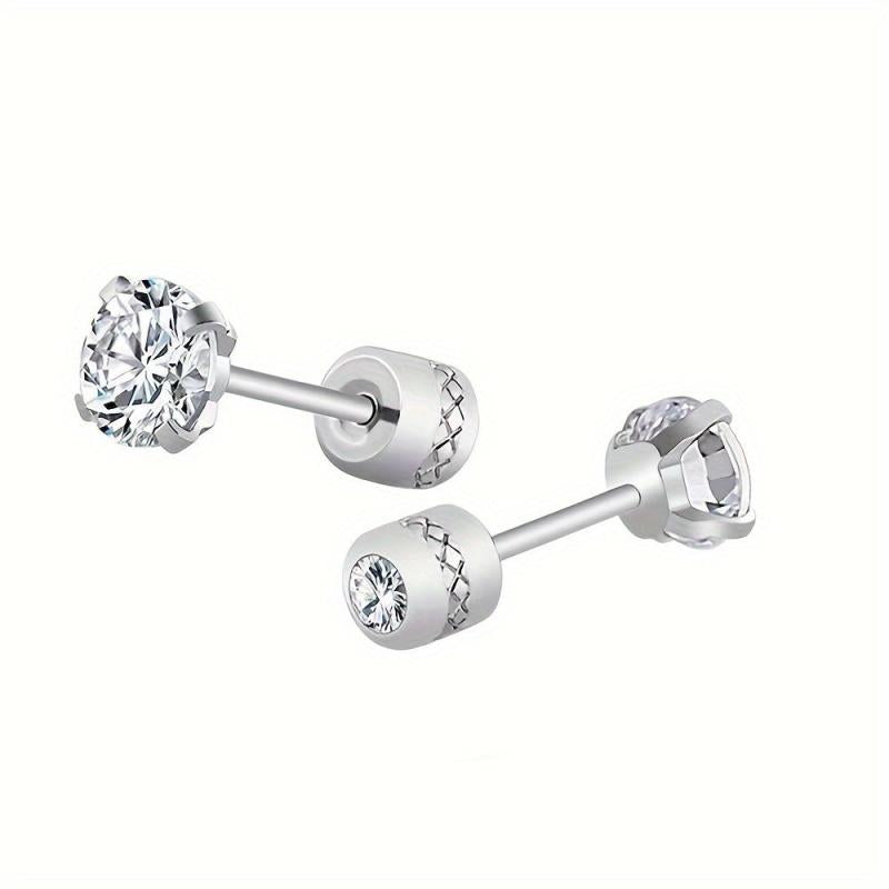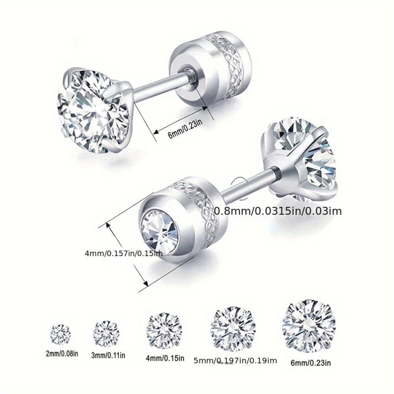 These elegant stud earrings feature a classic basket setting with screwback closures. Available in 2mm and 6mm sizes.