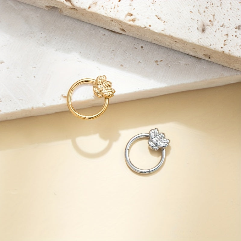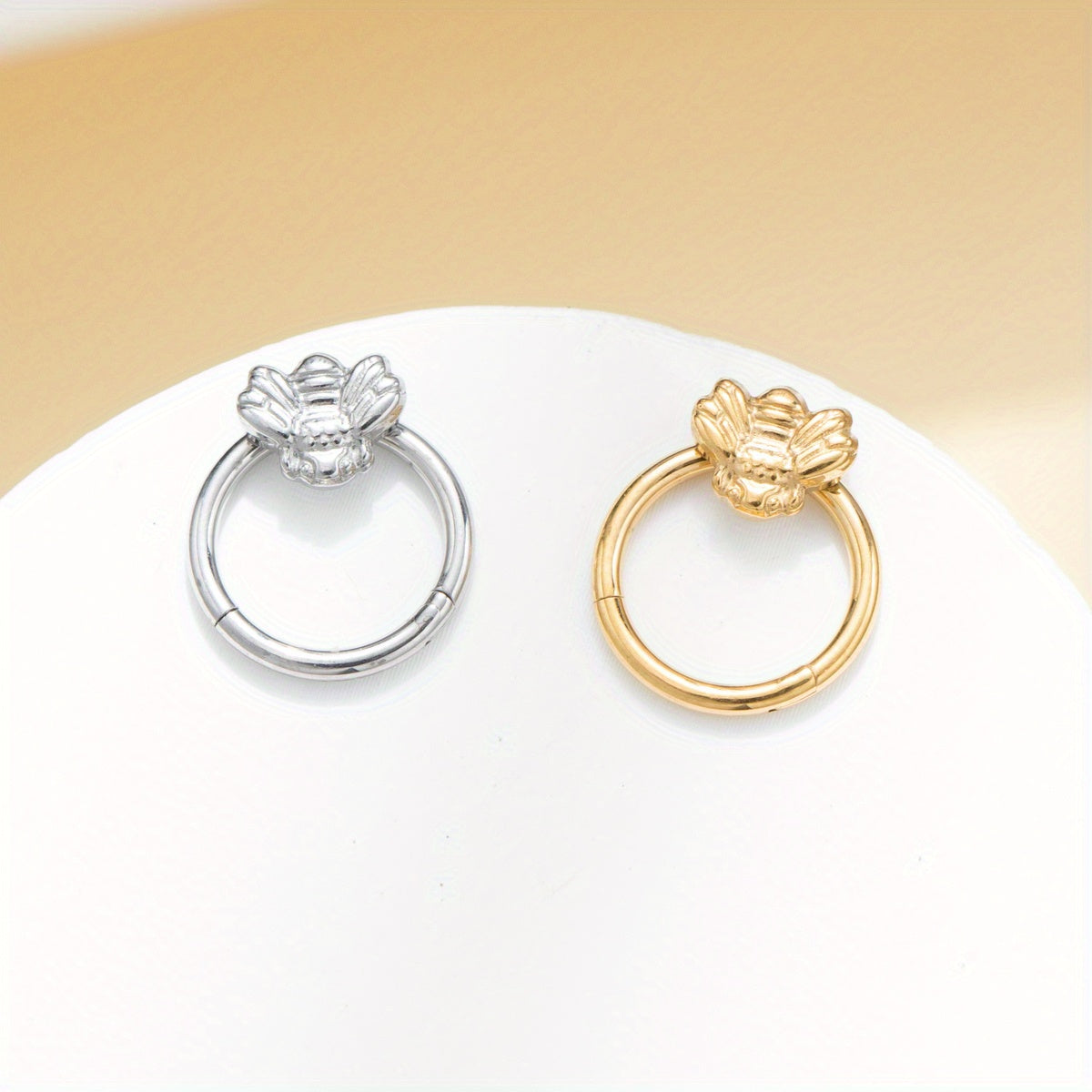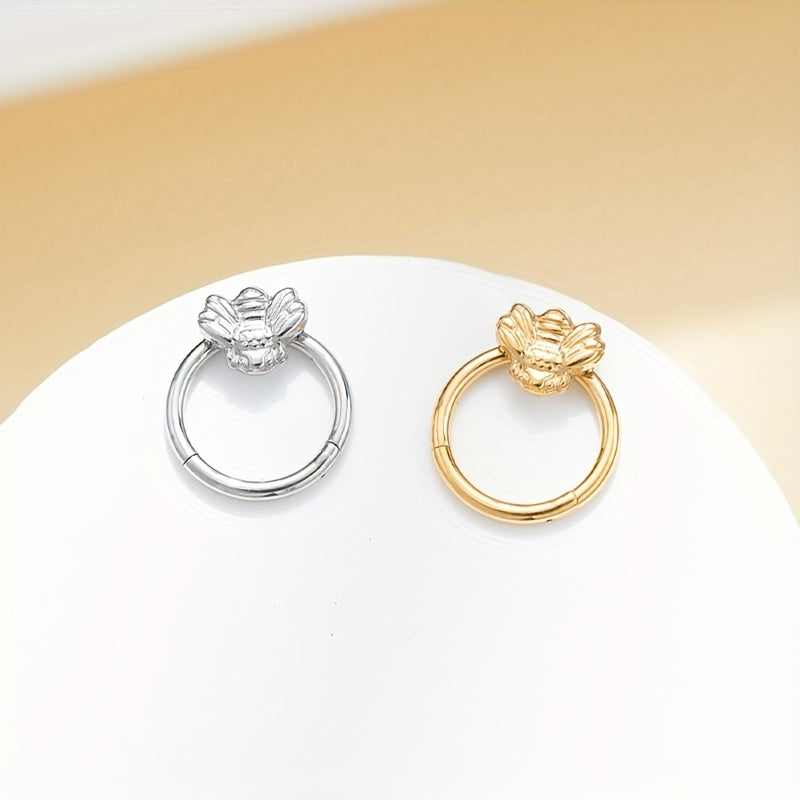 These stainless steel nose rings are perfect for men and feature a stylish bee design. They can be worn as cartilage piercing earrings for a unique look.