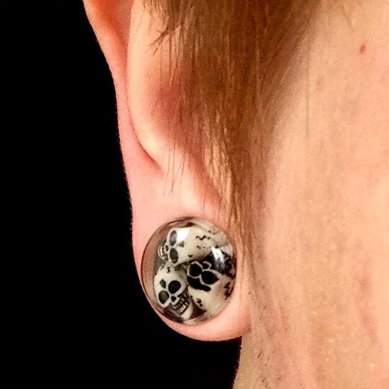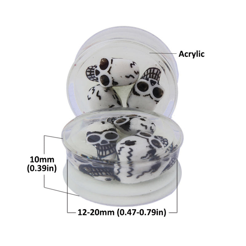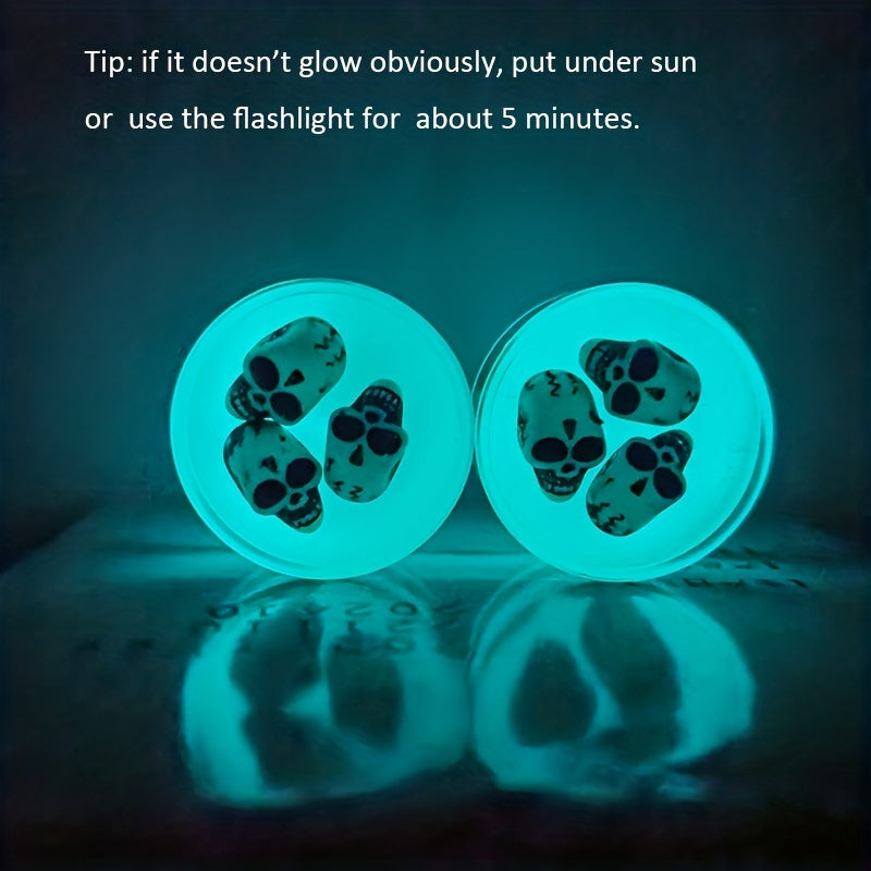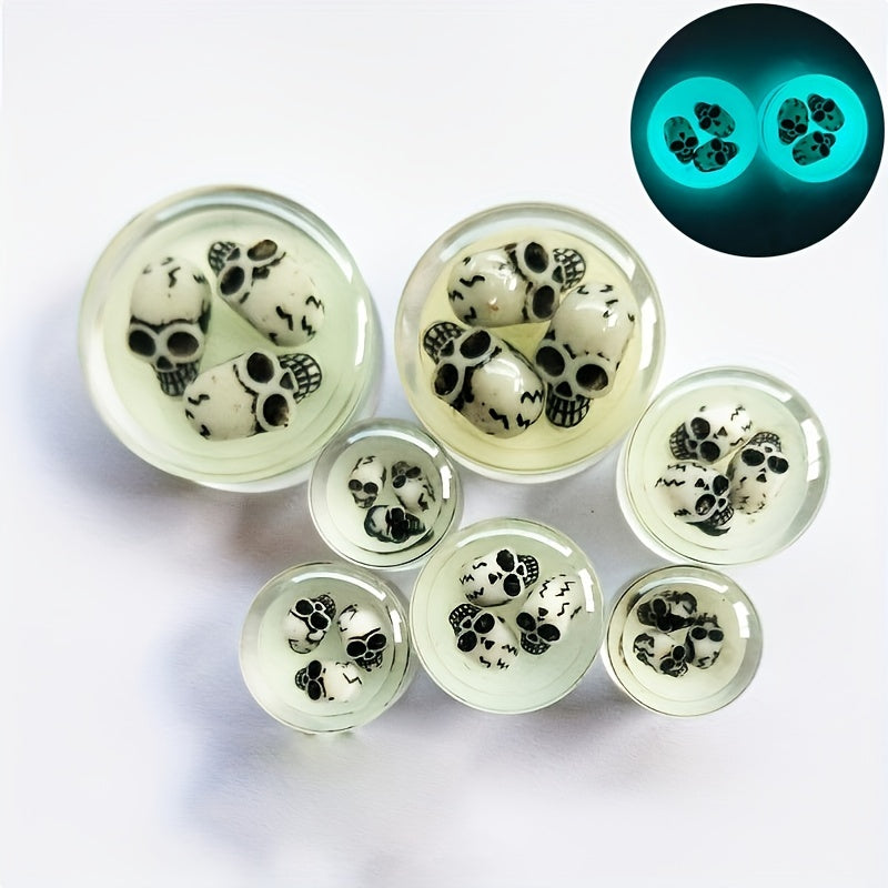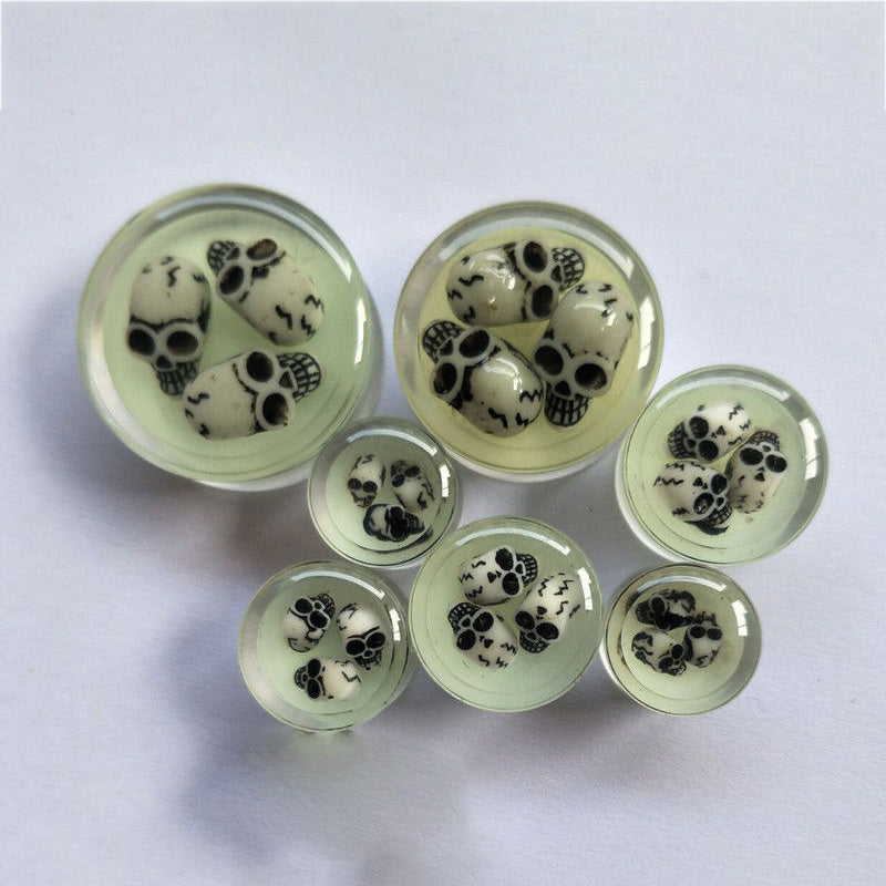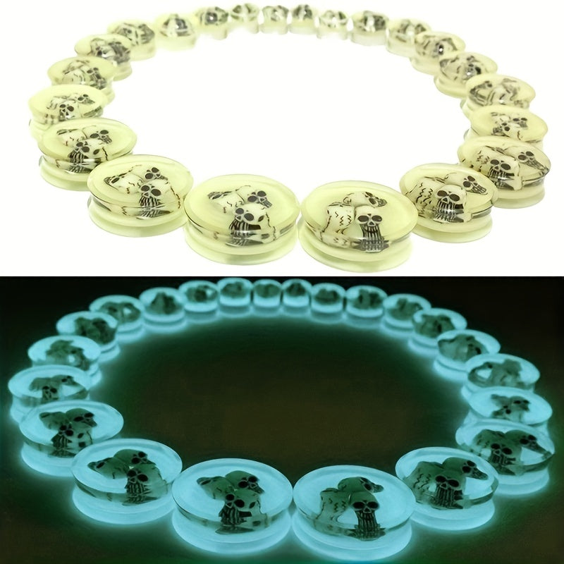 Get noticed with these glow-in-the-dark acrylic ear plugs and tunnels. Perfect for stretching your ear piercings, these body jewelry pieces feature a cool skull design.