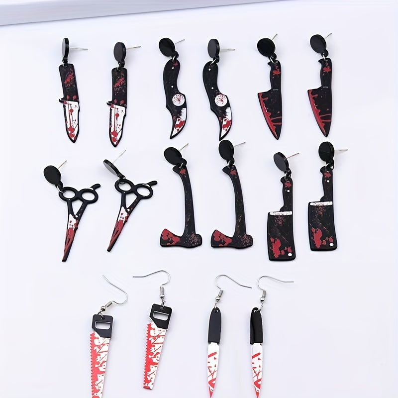 These spooky acrylic printed blood earrings are perfect for Halloween. Add a touch of creepiness to your outfit with these unique earrings.