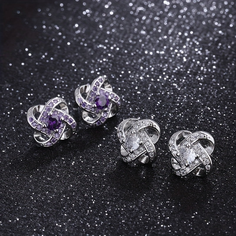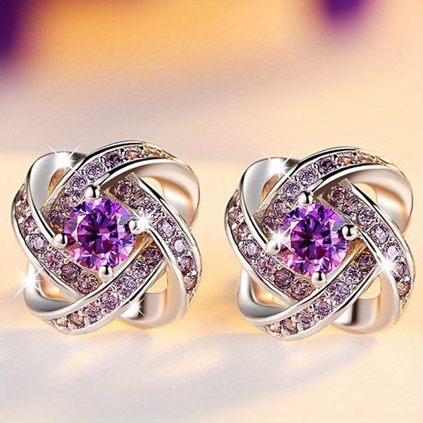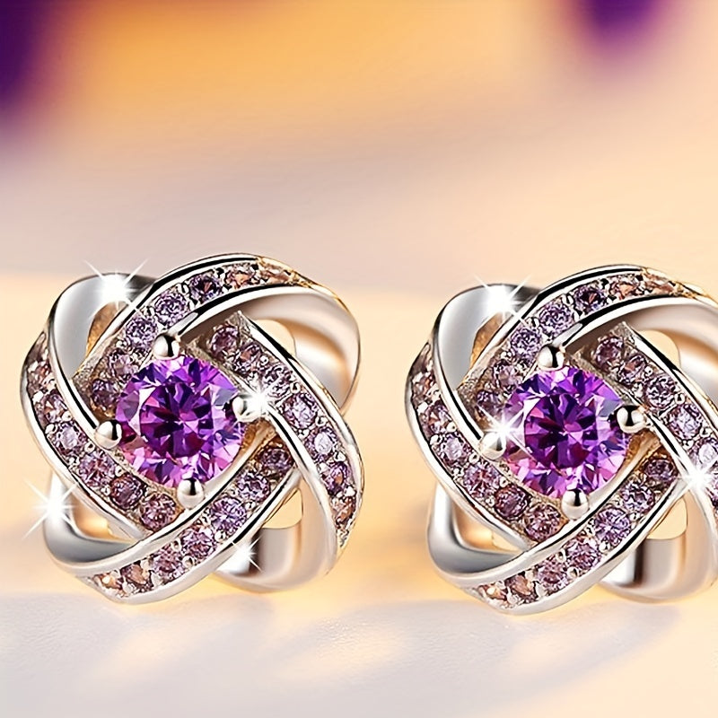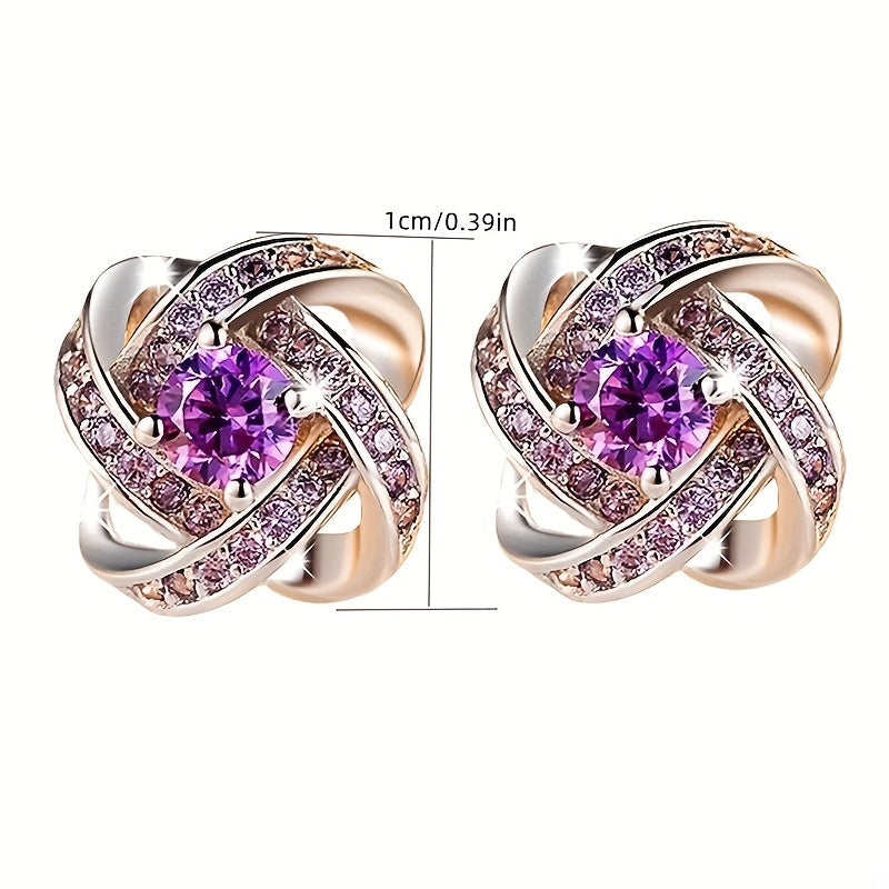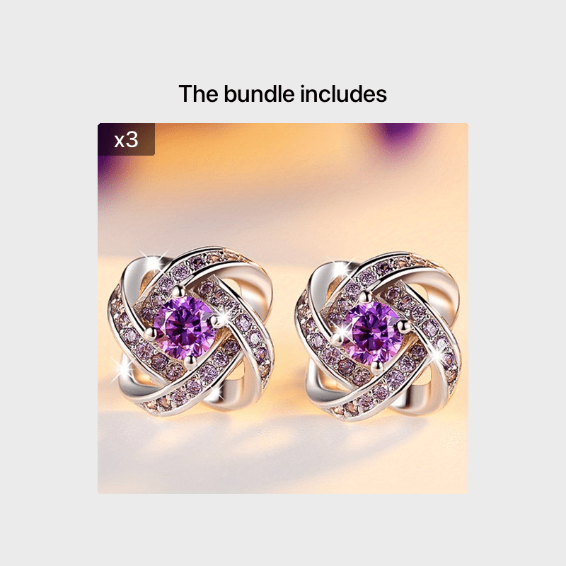 Make a stylish statement with this pair of fashionable earrings designed with a clover and purple faux diamond. Suitable for both men and women.