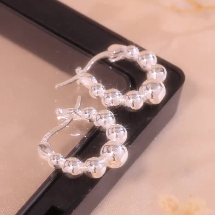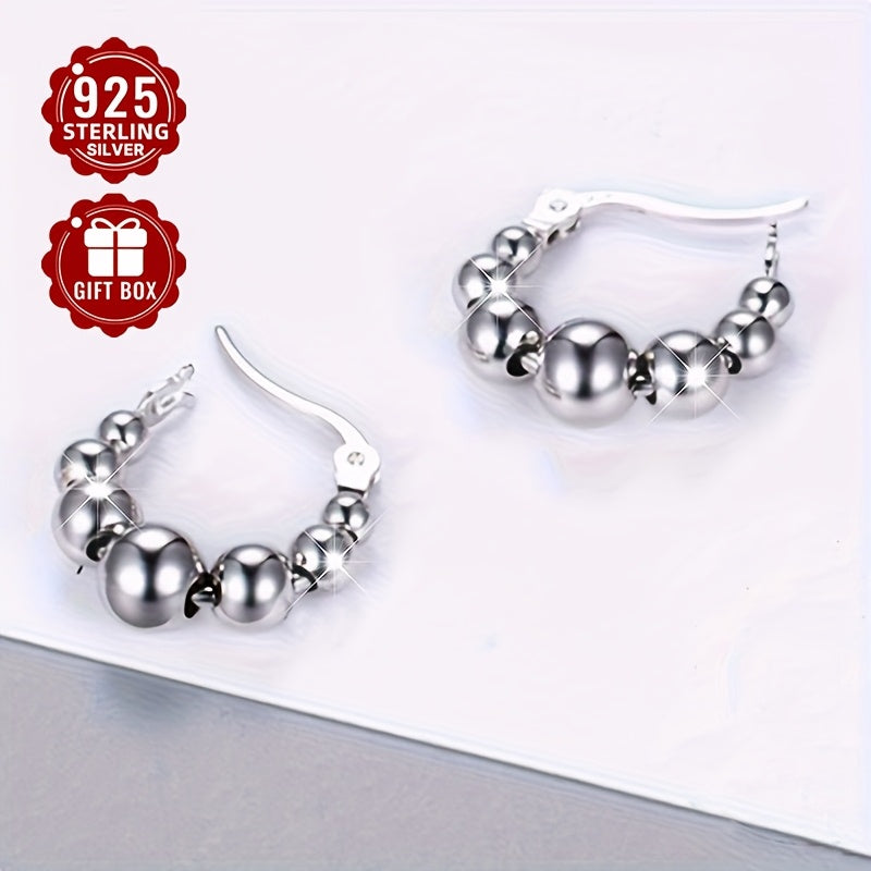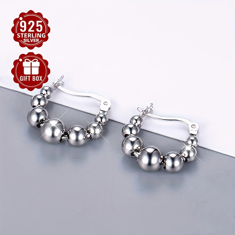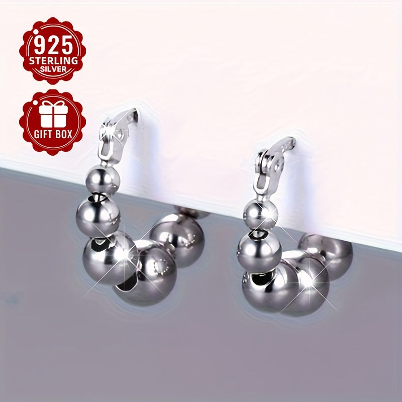 These elegant S925 pure silver earrings feature a light retro French style design. Perfect for girls as an ornament gift. Each earring weighs approximately 3.26g.