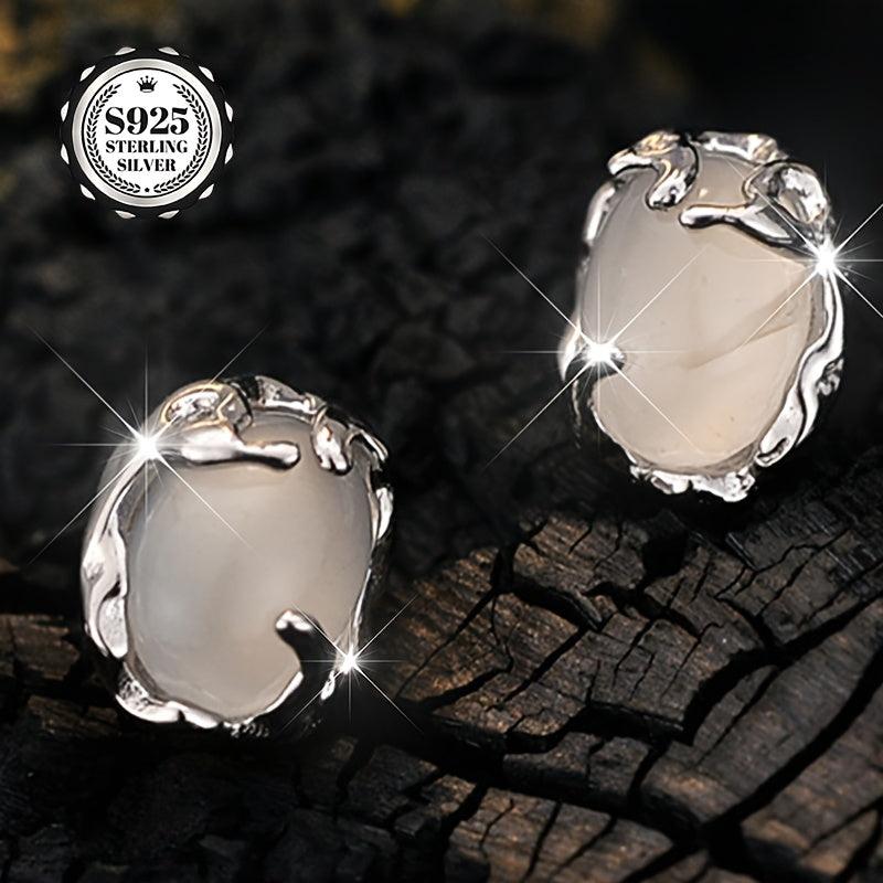 These elegant earrings are crafted with pure silvery artificial jade, making them perfect for daily wear, outings, dates, parties, weddings, vacations, and graduation ceremonies.