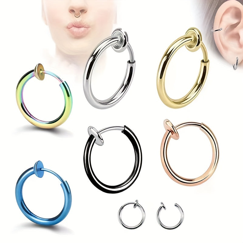 These ear clips do not require piercing and are suitable for both men and women. Made of high-quality stainless steel, these hip hop style ear accessories are perfect for adding an edgy touch to your look.
