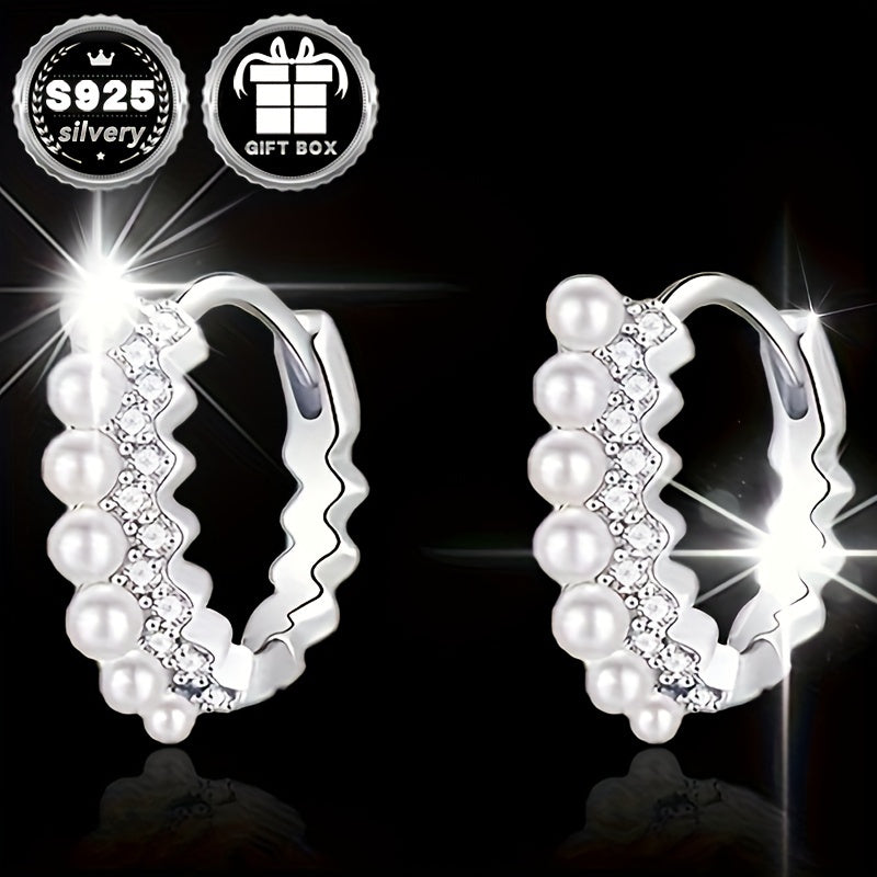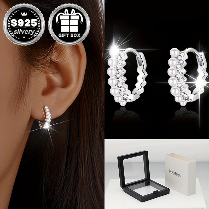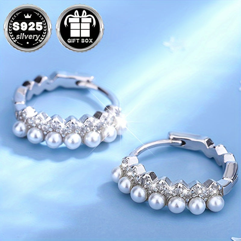 These stylish ring earrings feature full diamond and pearl design for a sexy look. Made with 925 silver and synthetic zirconium, perfect for daily wear, party or vacation. Ideal gift for women.
