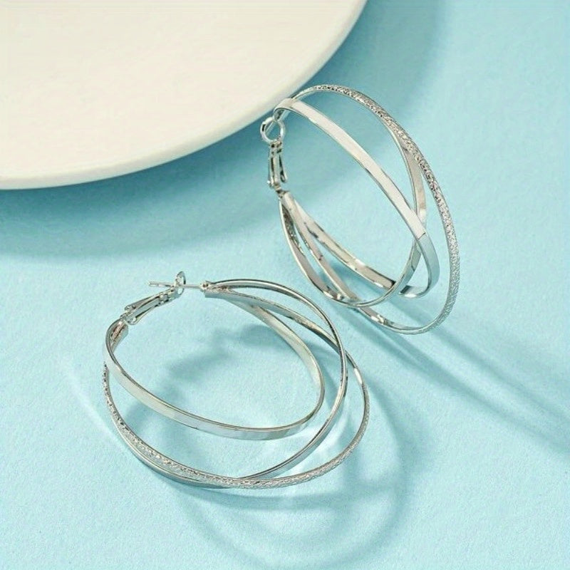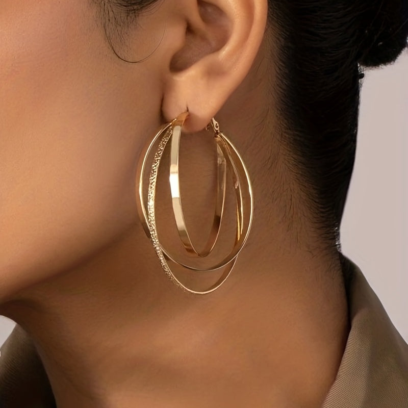 3-layer Bohemian Hollow Hoop Earrings Alloy 18K Plated Jewelry
