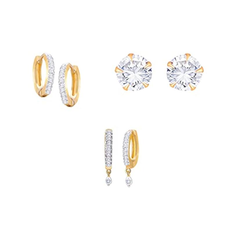 Get this stylish set featuring gold-plated hoop and stud earrings. Perfect for any outfit.