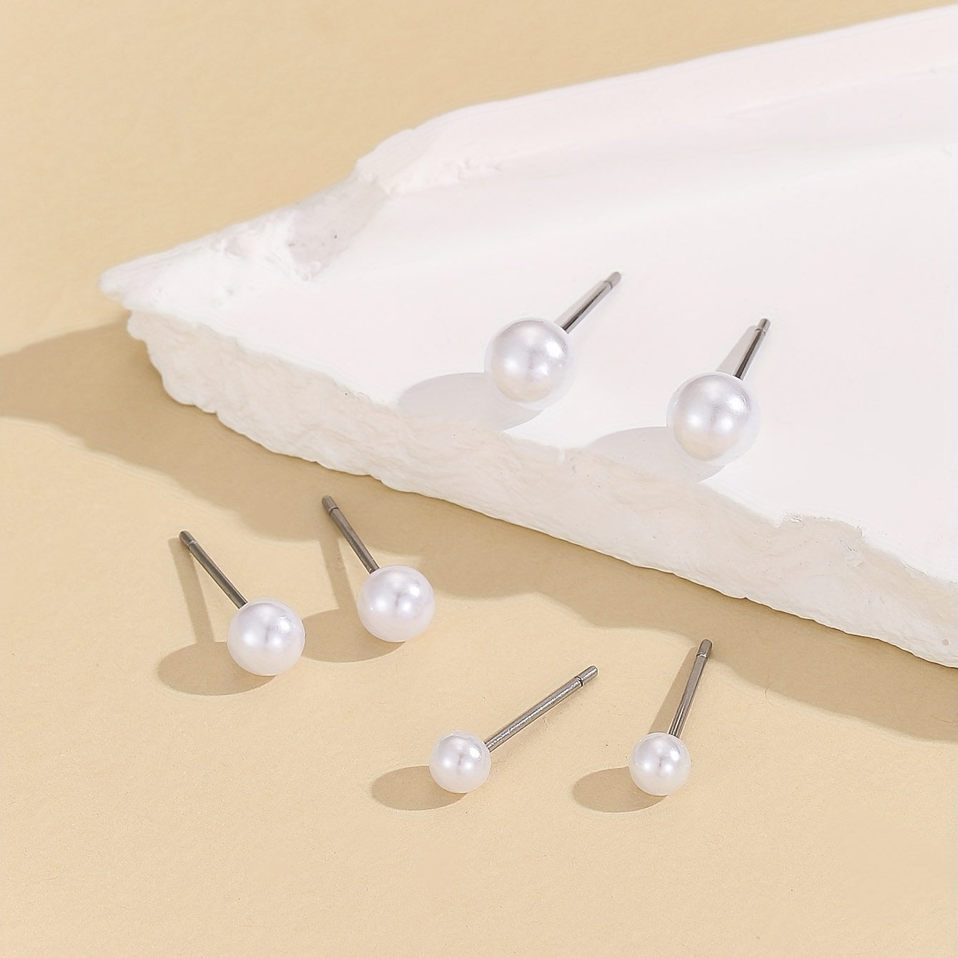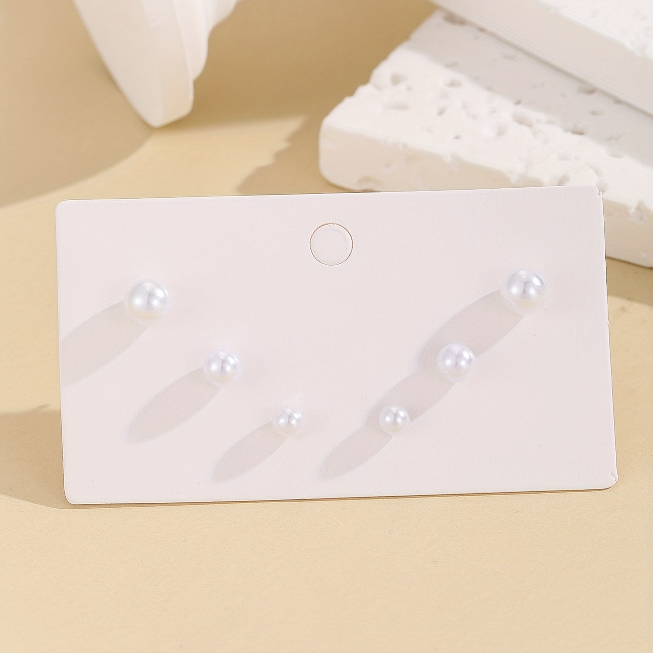 3 Pairs Faux Pearl Stud Earrings Delicate Gift Women Girls Casual