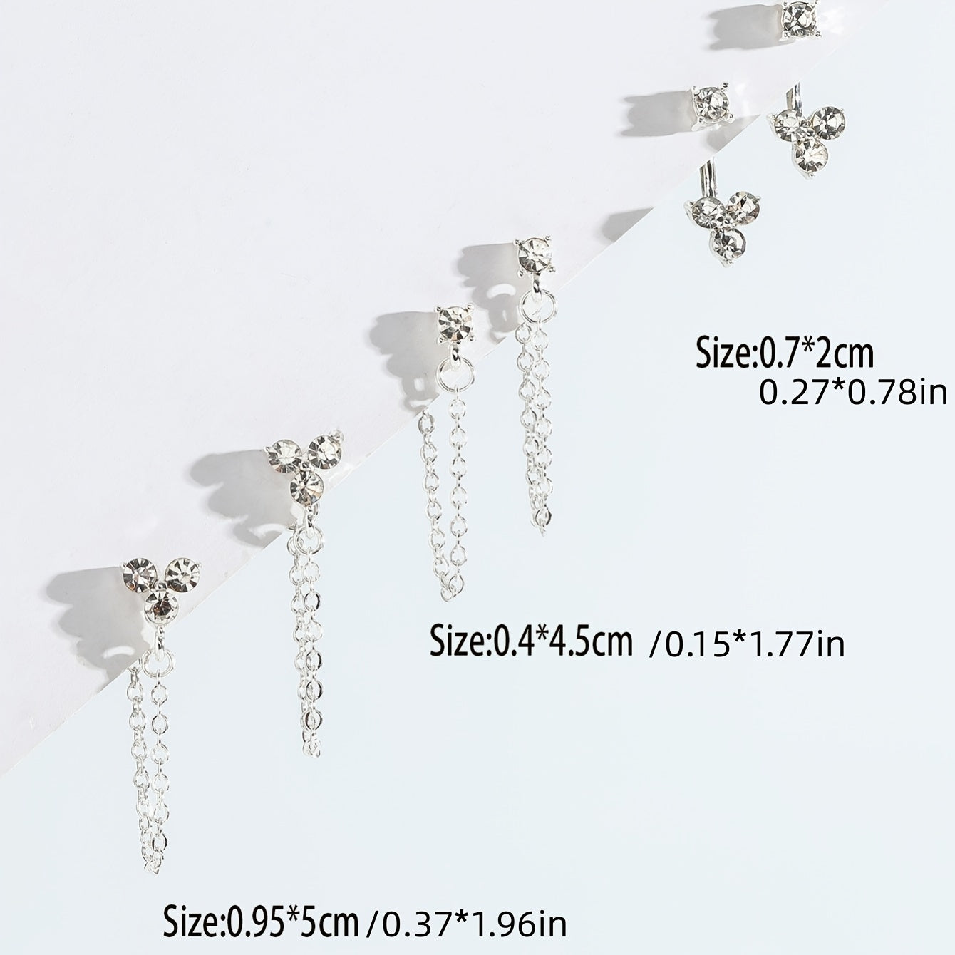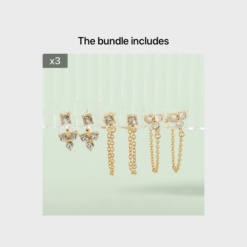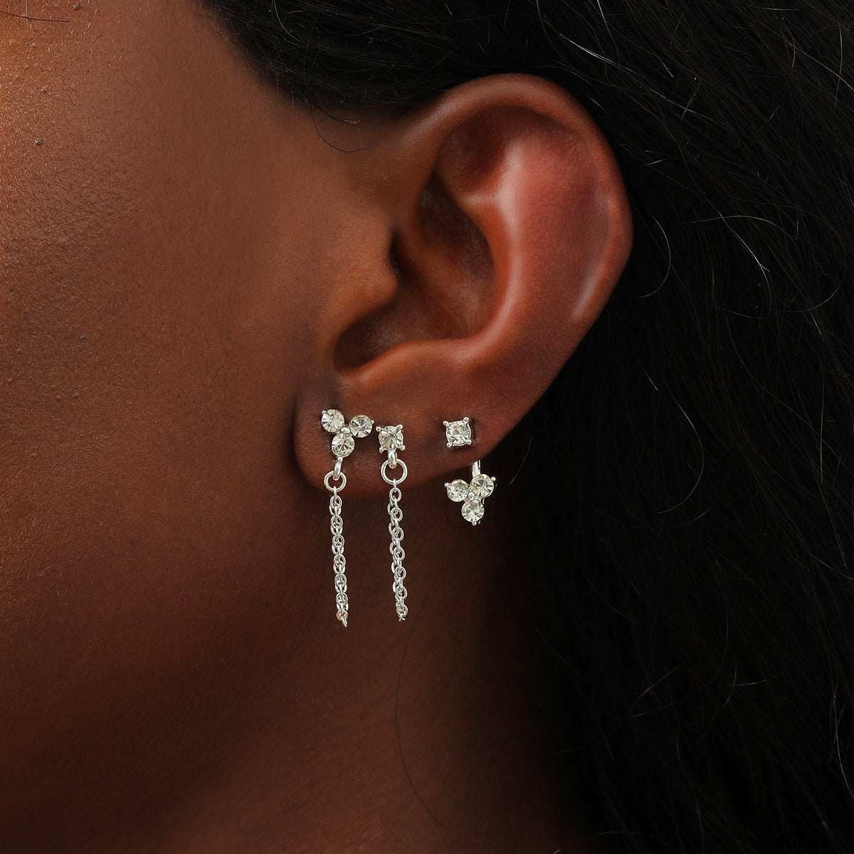 Add sparkle to your daily wear with this set of 3 pairs of rhinestone chain earrings. Perfect ear jewelry decoration for any occasion.