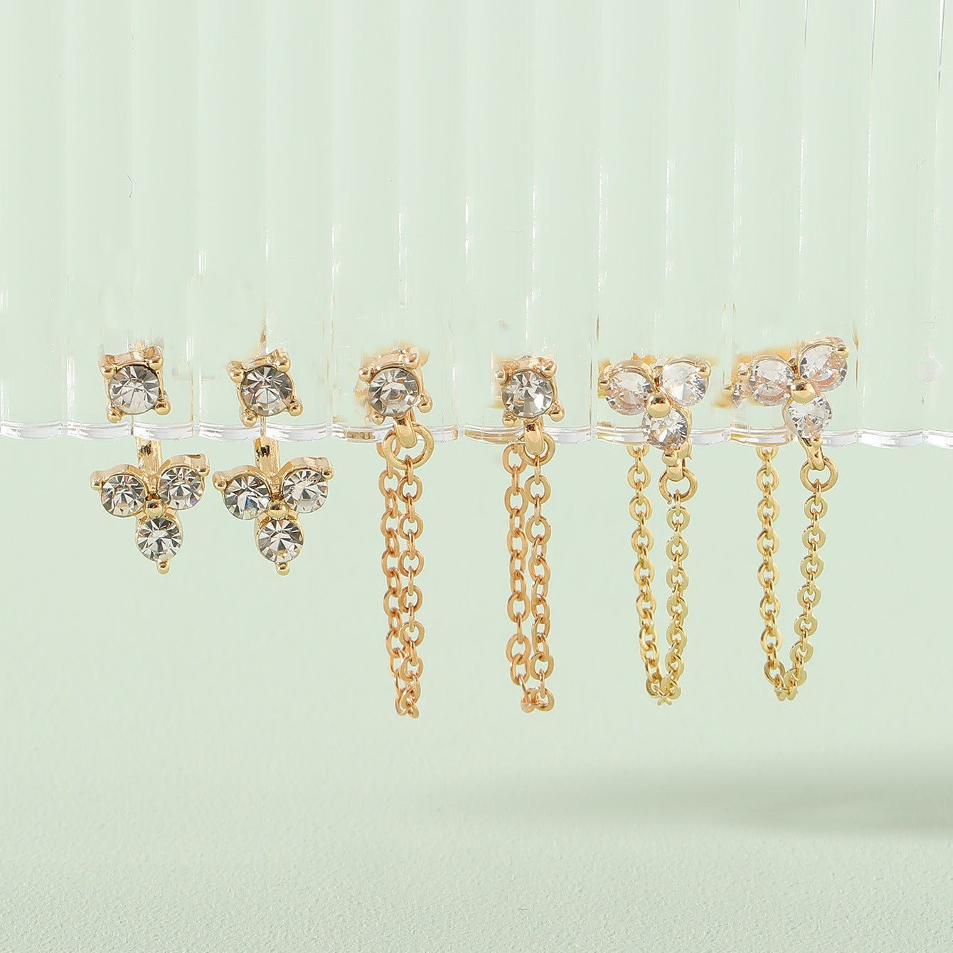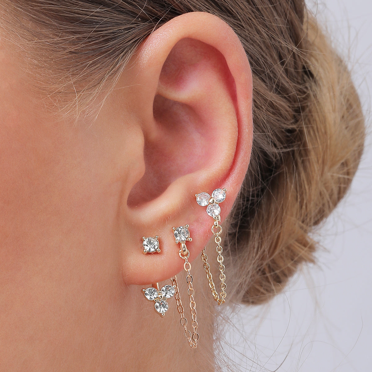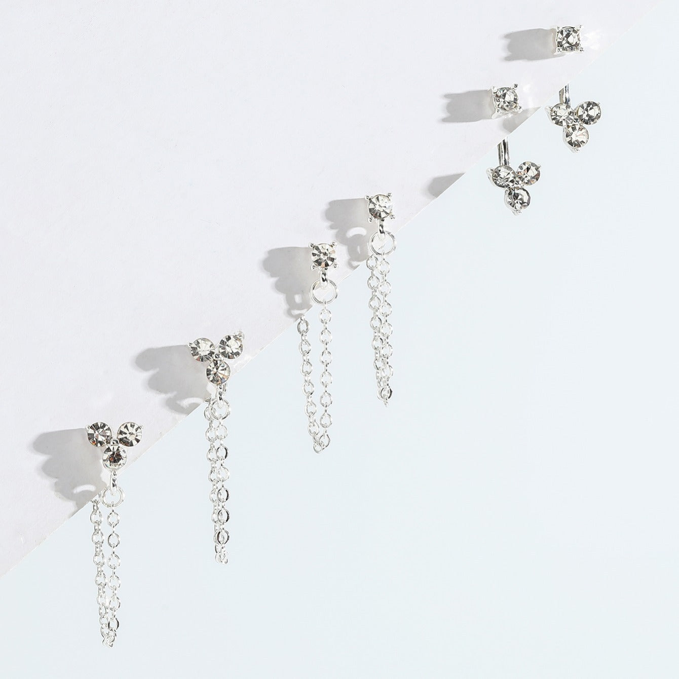 Add sparkle to your daily wear with this set of 3 pairs of rhinestone chain earrings. Perfect ear jewelry decoration for any occasion.