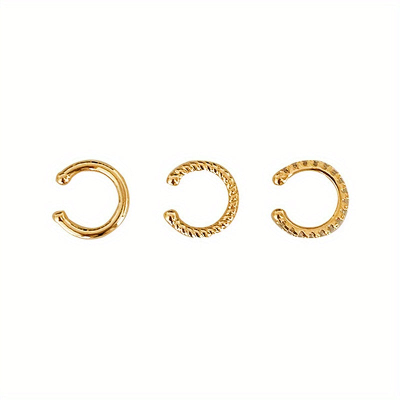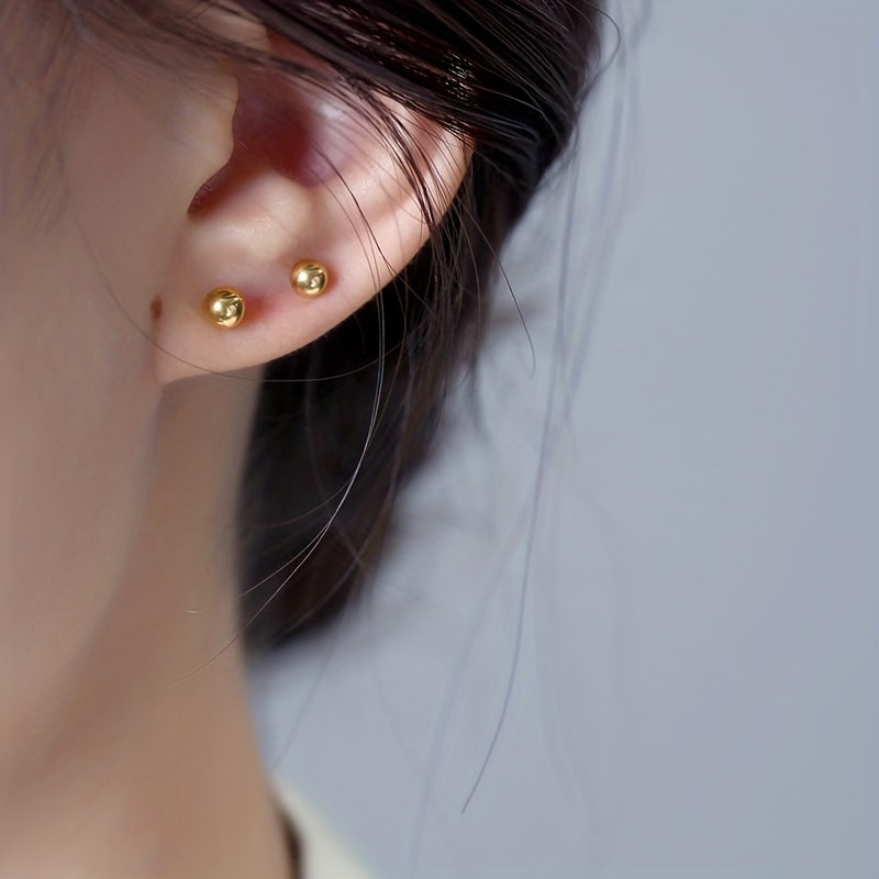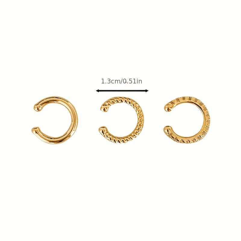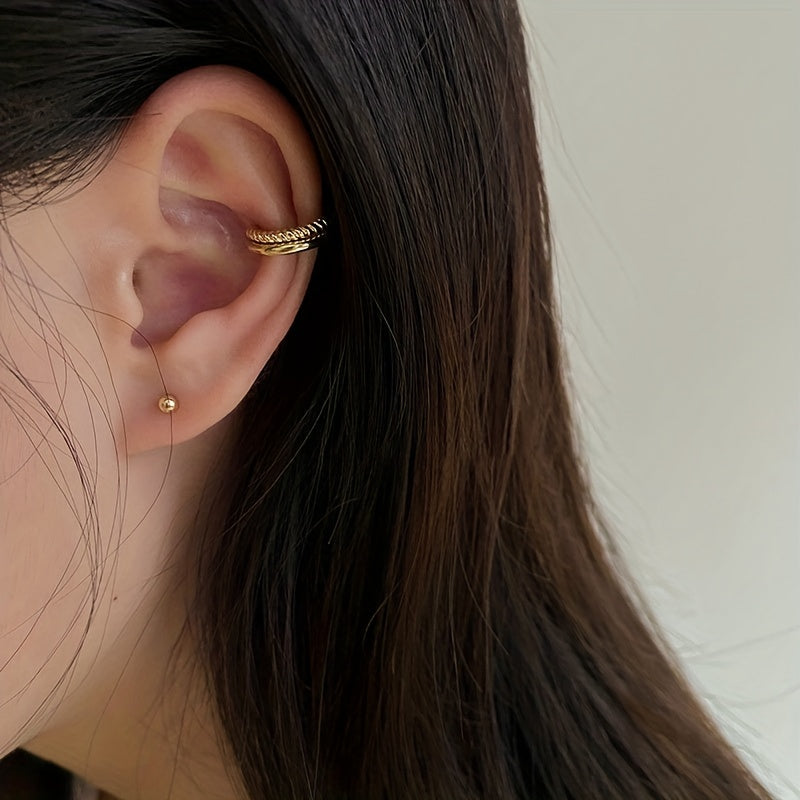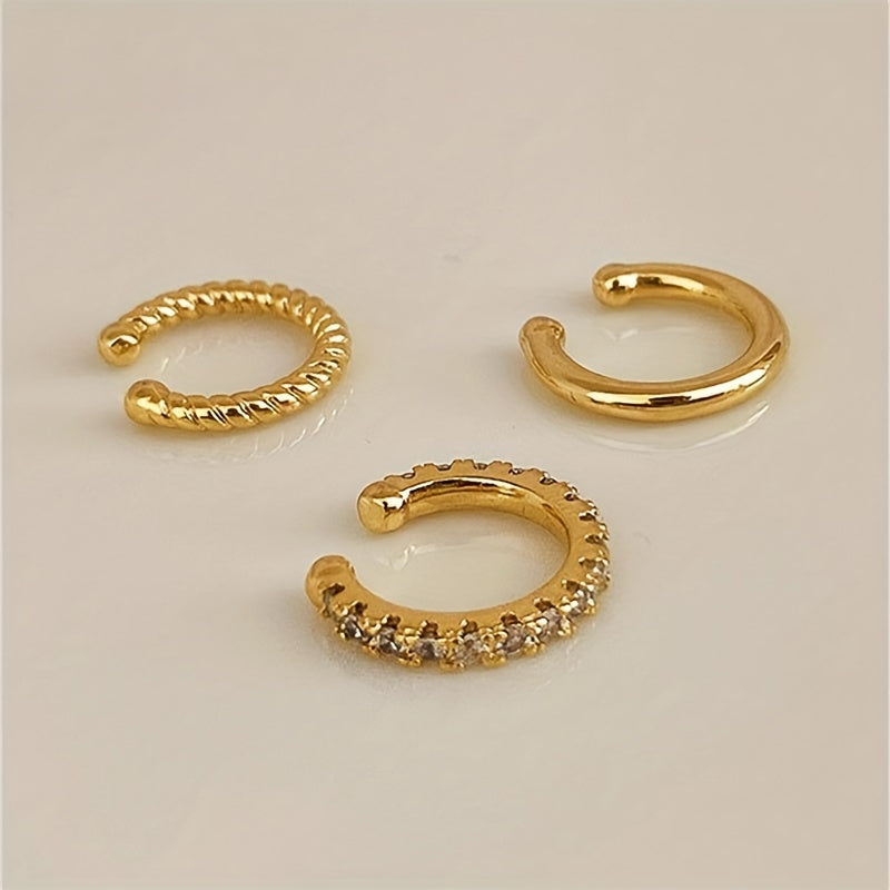 This stylish jewelry set includes 3 minimalist ear cuffs and golden bead stud earrings, all crafted from copper and plated in 14K gold. A perfect gift for someone special.