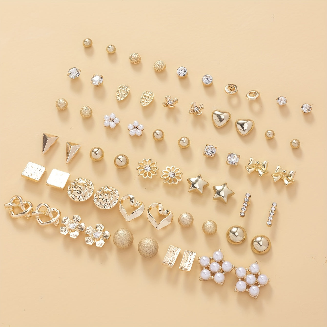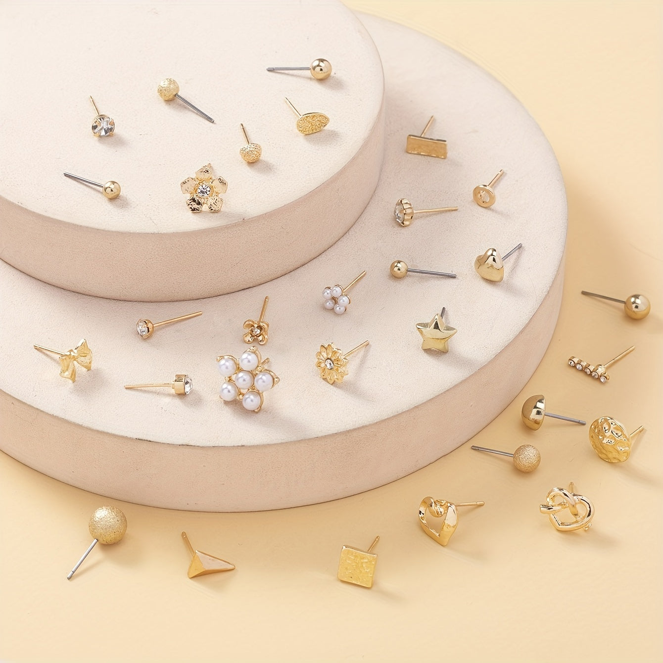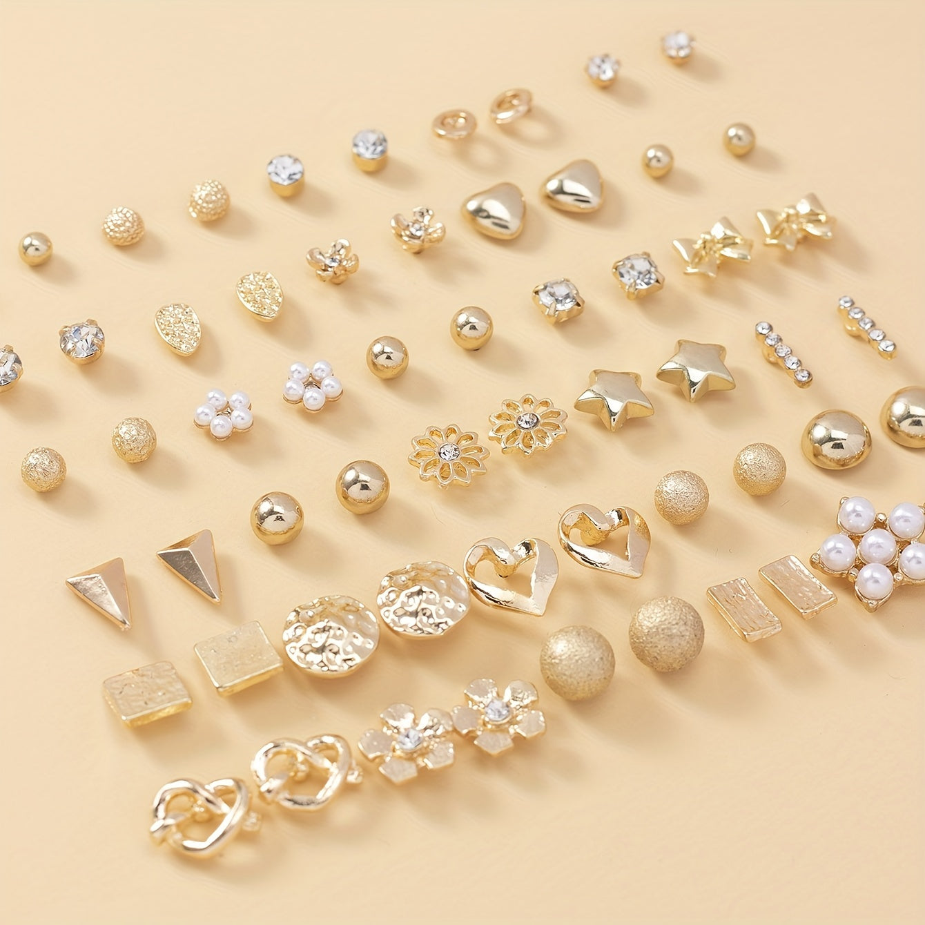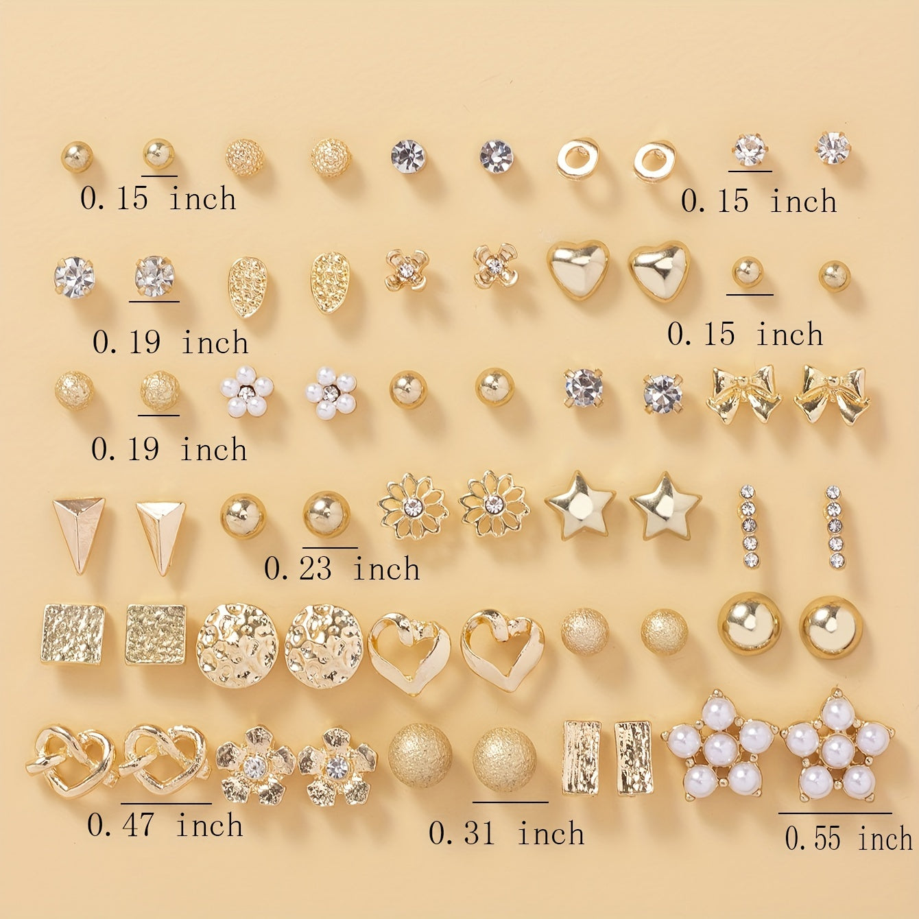 This set includes 30 pairs of earrings featuring bowknot, faux pearl, heart, flower, water drop, and star designs. Perfect for adding variety to your jewelry collection.