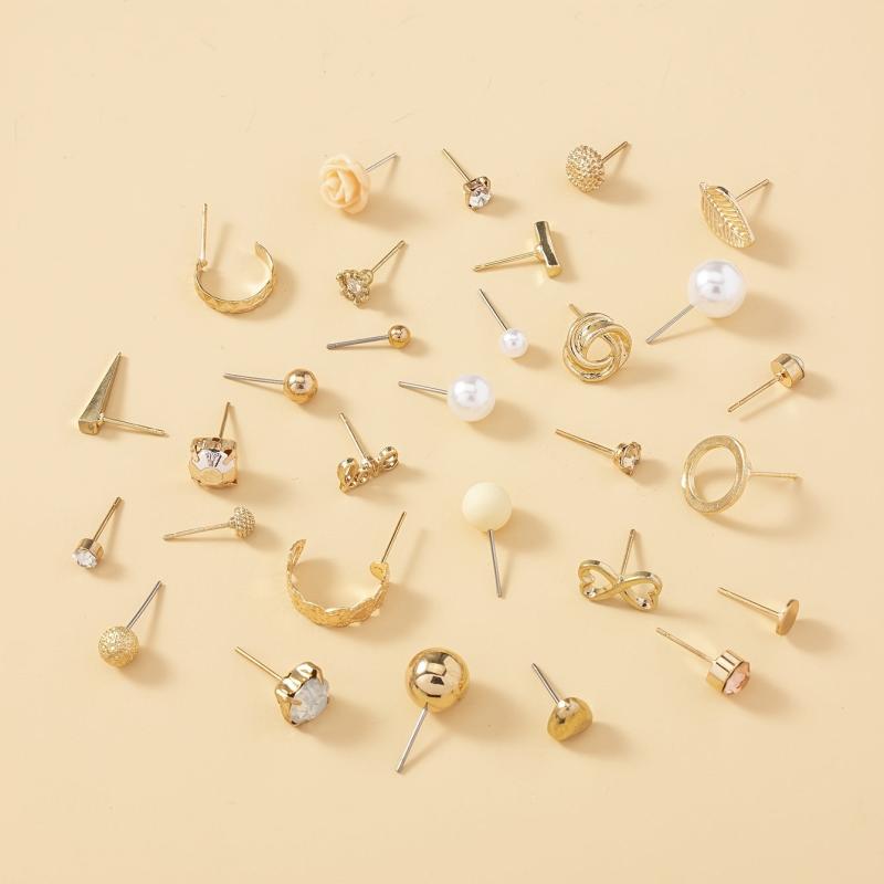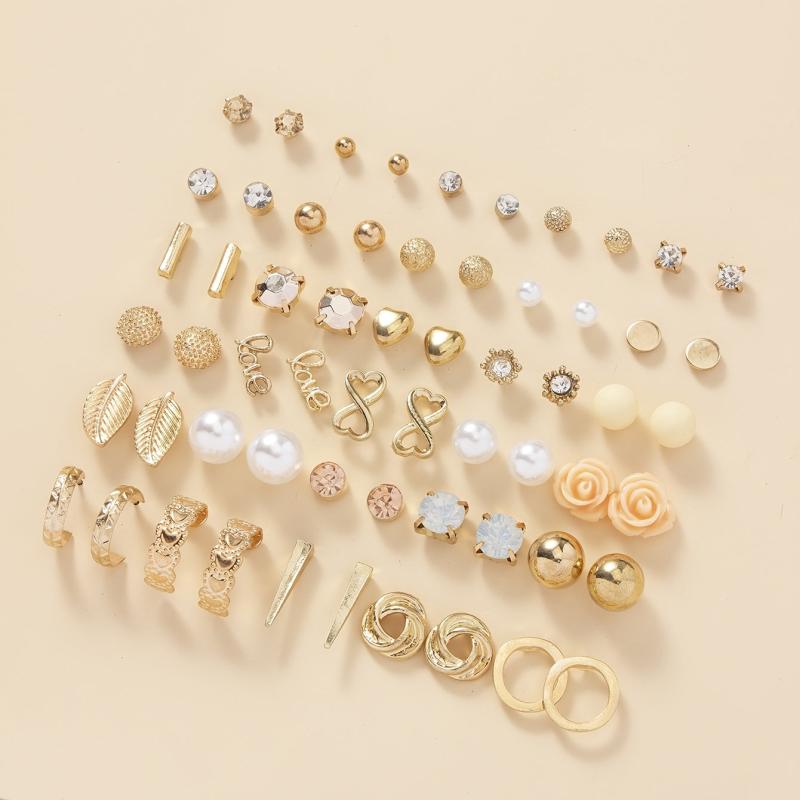 This set includes 30 pairs of delicate flower and leaf stud earrings, perfect for adding a touch of elegance to any outfit.