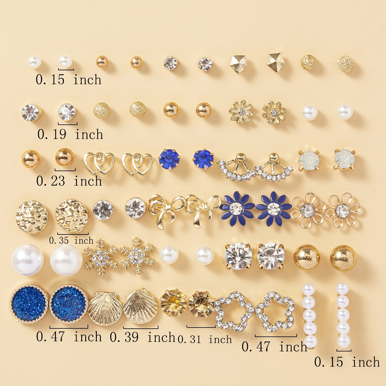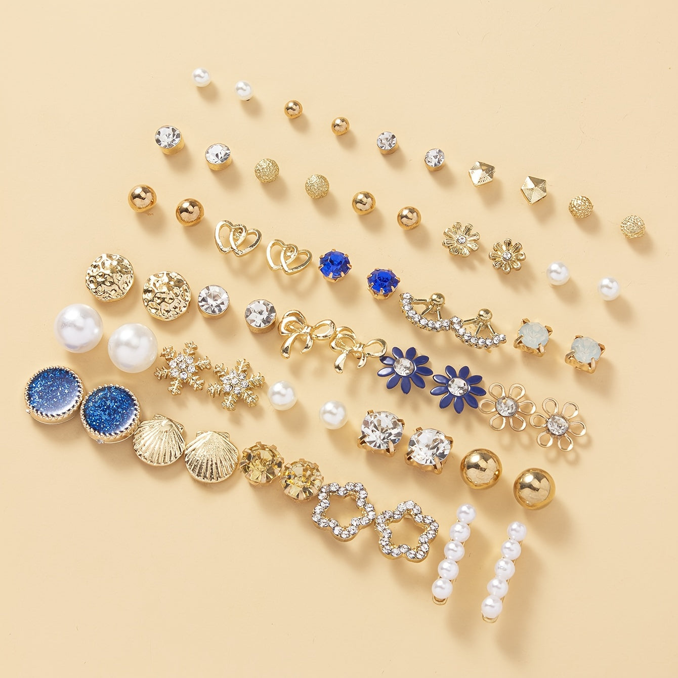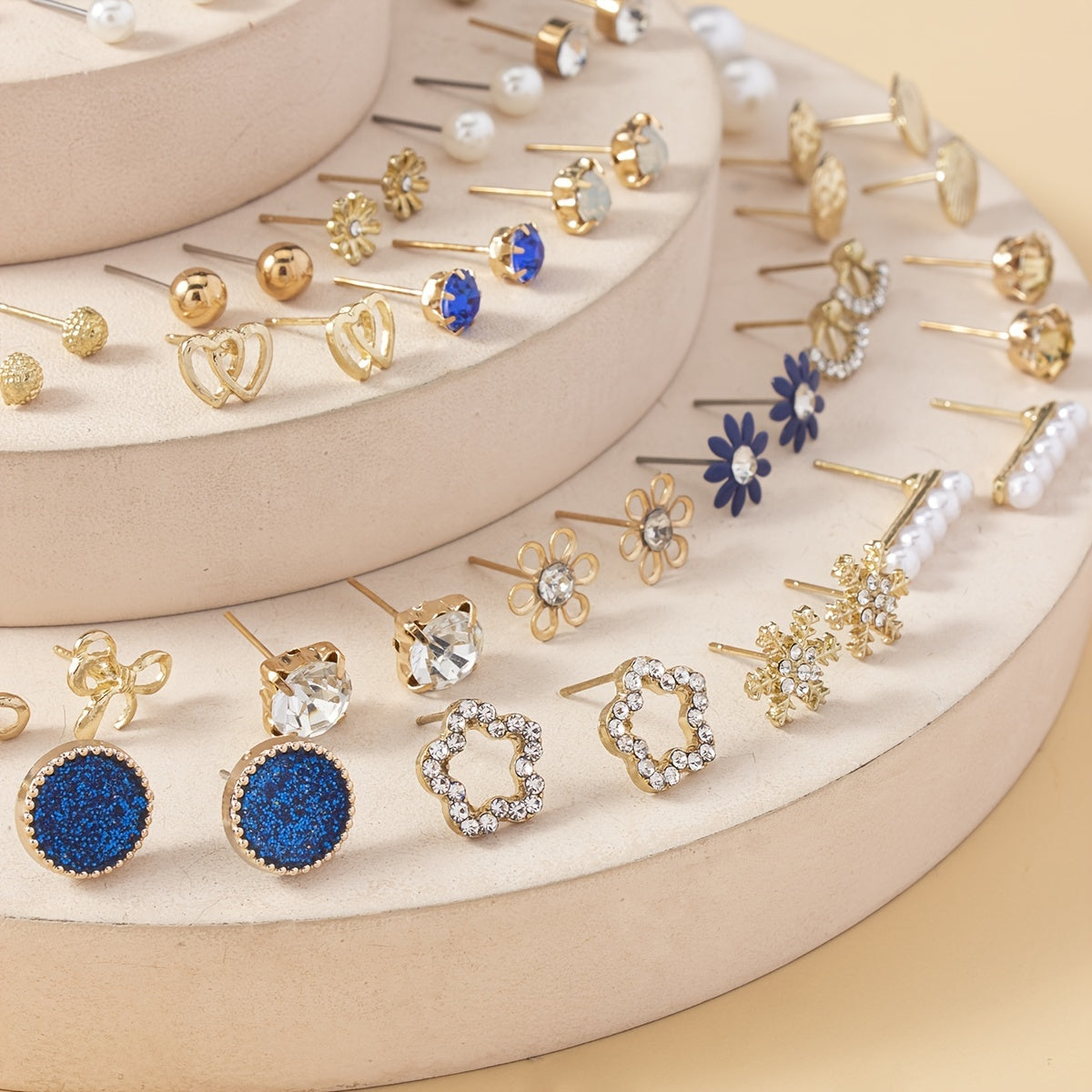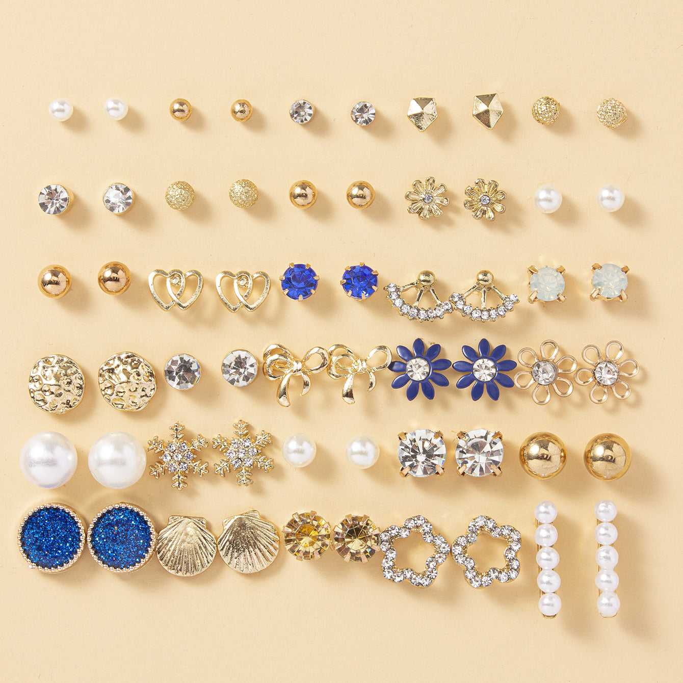 • Includes 30 pairs of stud earrings in various shapes