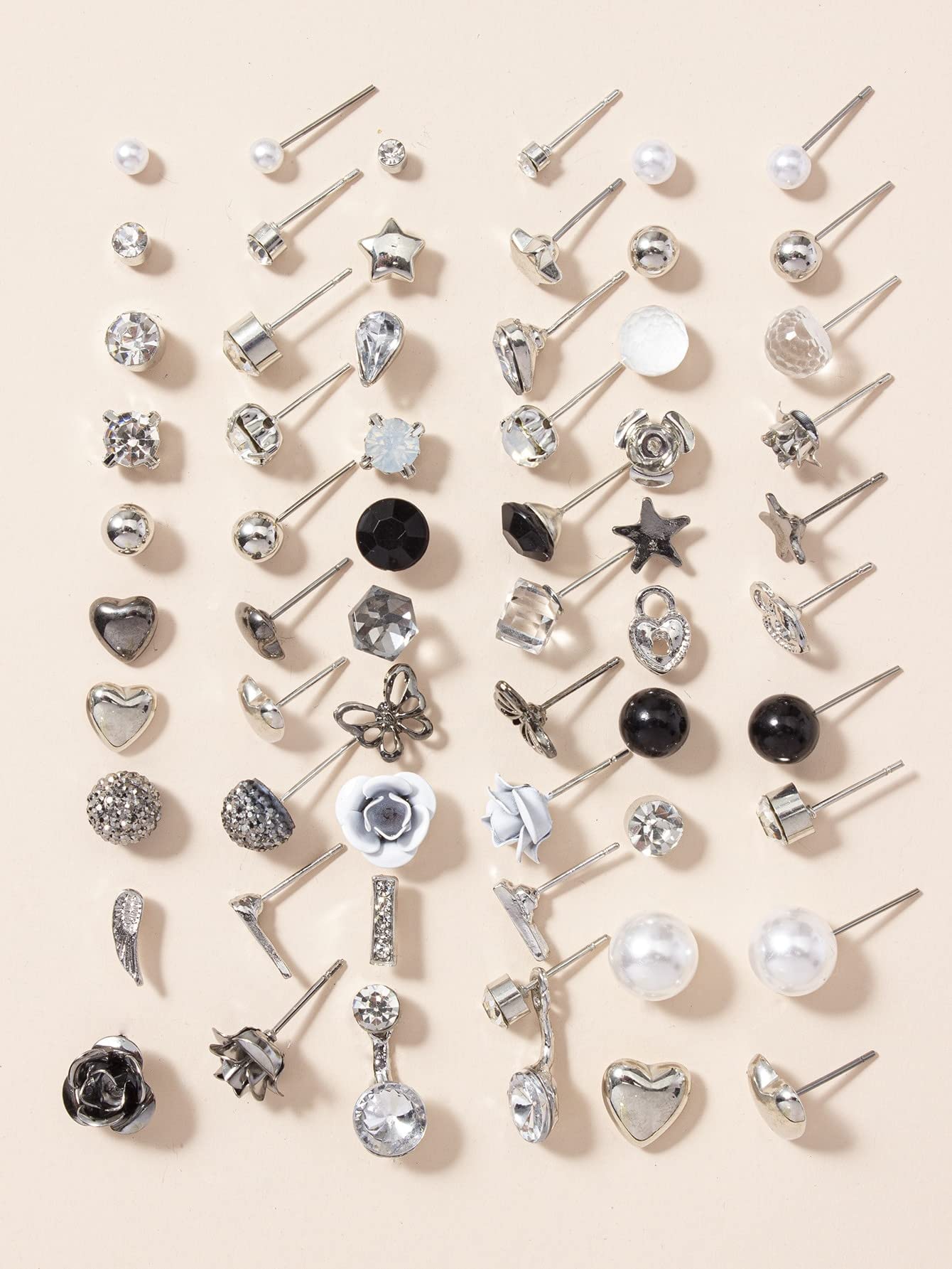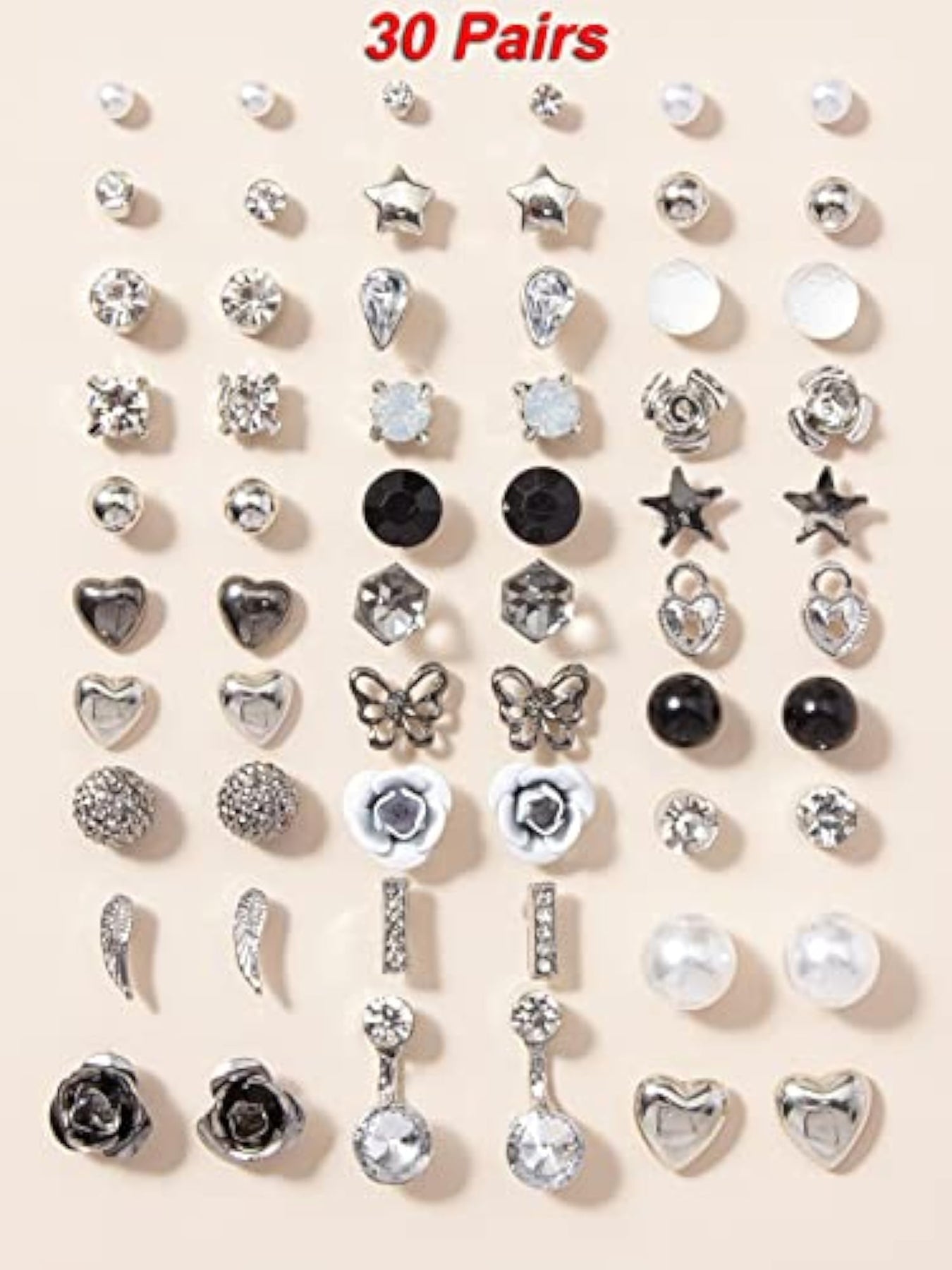Elevate your style with this trendy combo set of earrings featuring a mix of crystals and pearls. Includes 30 pairs of fashionable earrings.