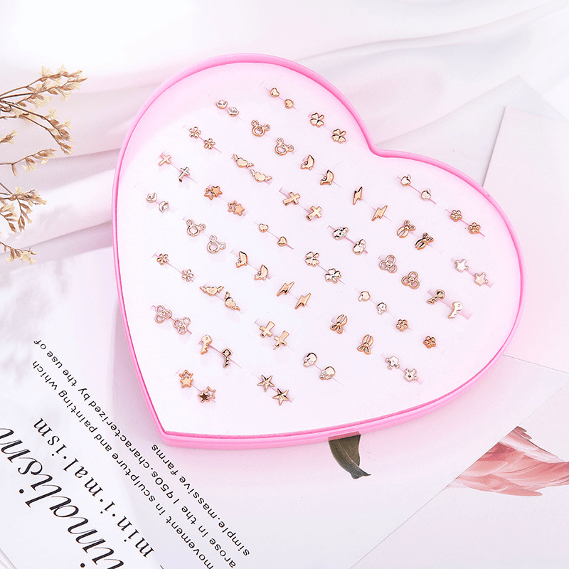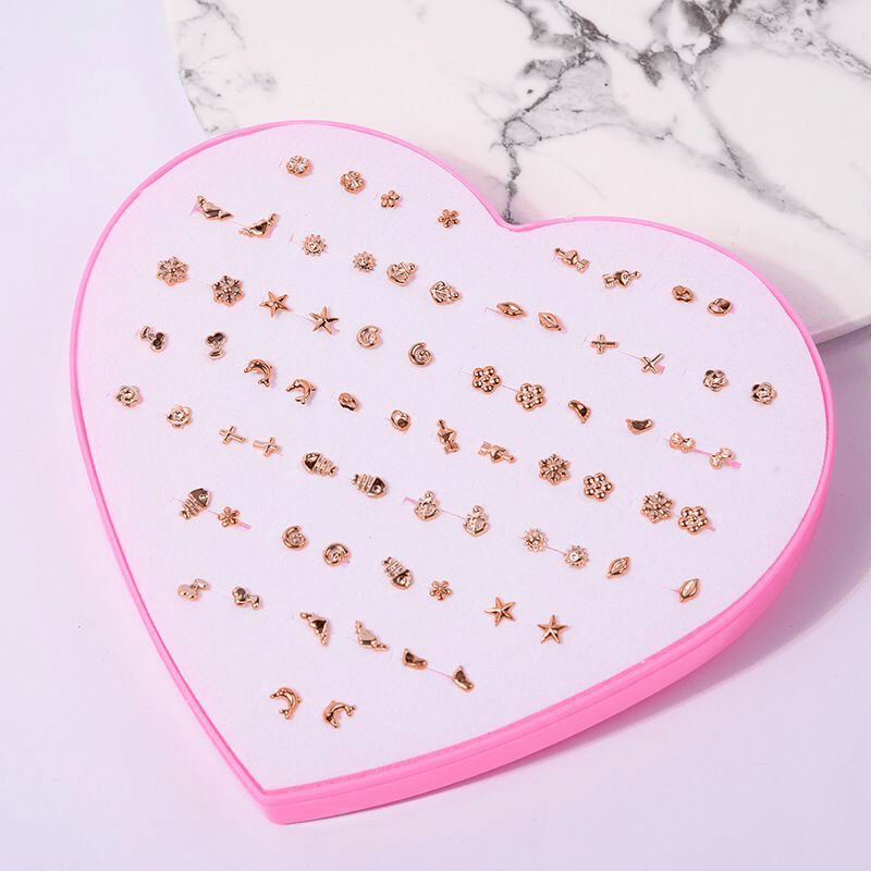 Upgrade your accessory collection with this set of 36 pairs of golden stud earrings. This mixed set is perfect for adding a touch of glamour to any outfit.