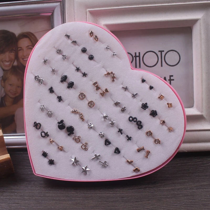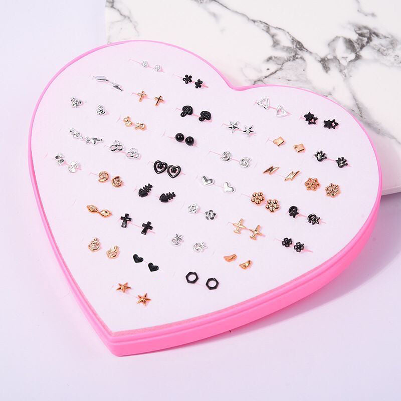 Add a touch of elegance to your look with this set of 36 pairs of gold and silver mixed hair stud earrings. These earrings are perfect for women who love versatile jewelry pieces.
