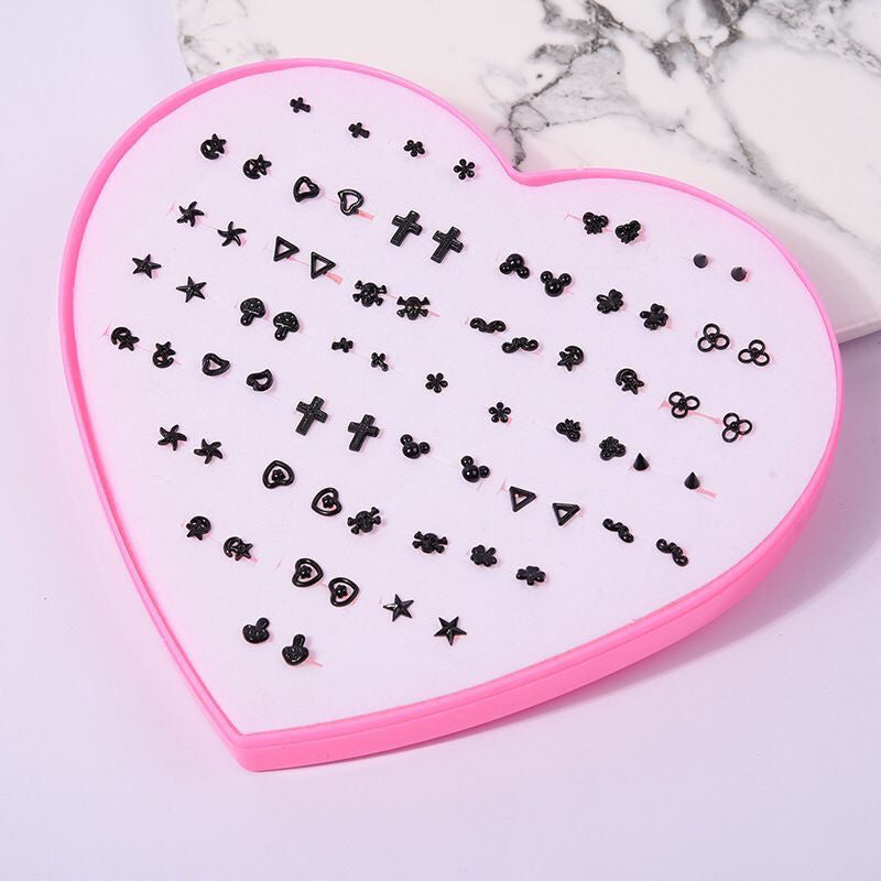 Elevate your style with this stunning set of 36 pairs of stud earrings. A perfect mix of designs for any occasion, these earrings are a must-have for every jewelry collection.