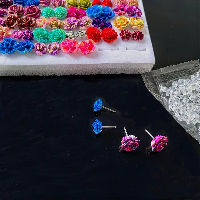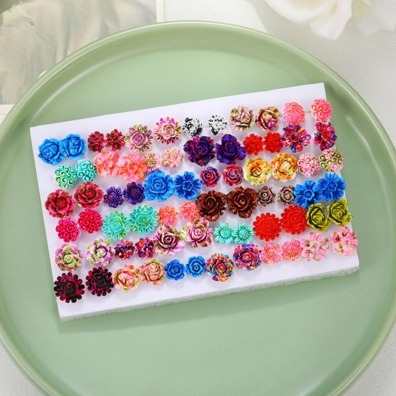Add a touch of elegance to your outfit with this set of 36 pairs of resin rose earrings. Versatile and fashionable, these earrings will complement any style.