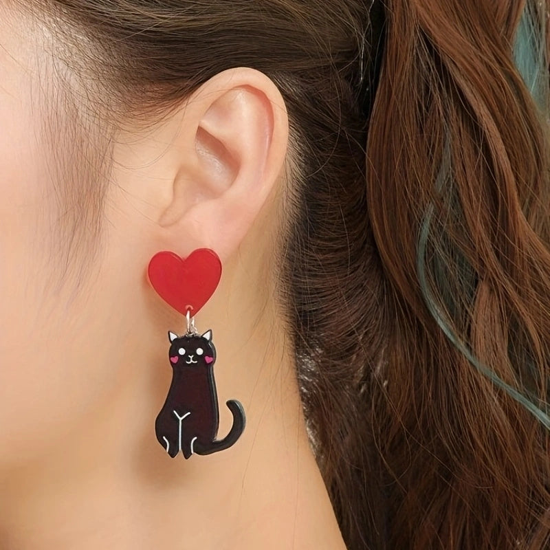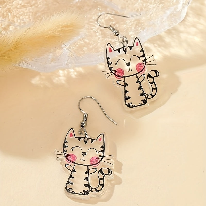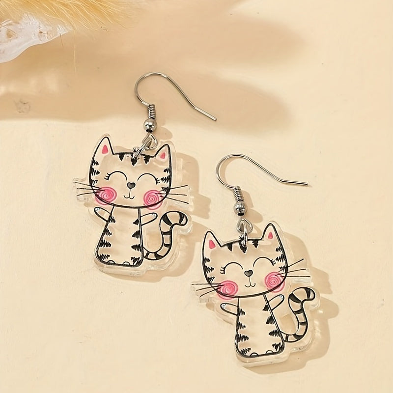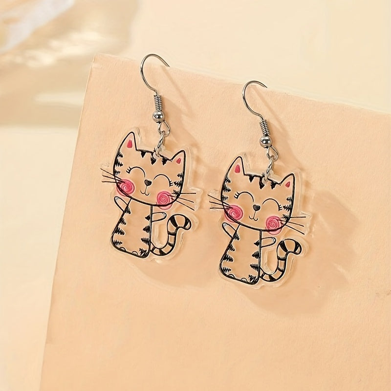 Add a touch of feline charm to your outfit with these adorable 3D cat drop dangle earrings. Perfect for cat lovers and a great gift idea.