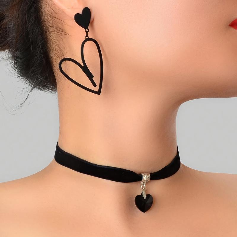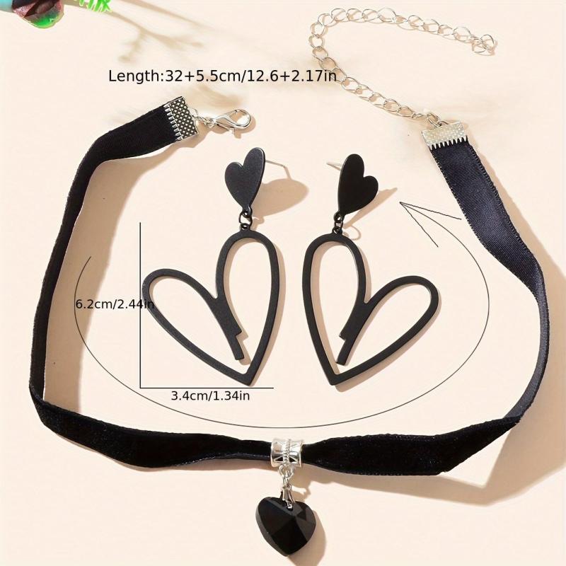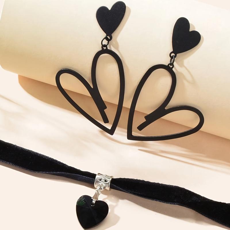 Complete your look with this stylish 3-piece jewelry set featuring a heart pendant necklace, matching earrings, and a choker. The gun-plated iron design adds a hip-hop flair to your ensemble, perfect for all seasons.