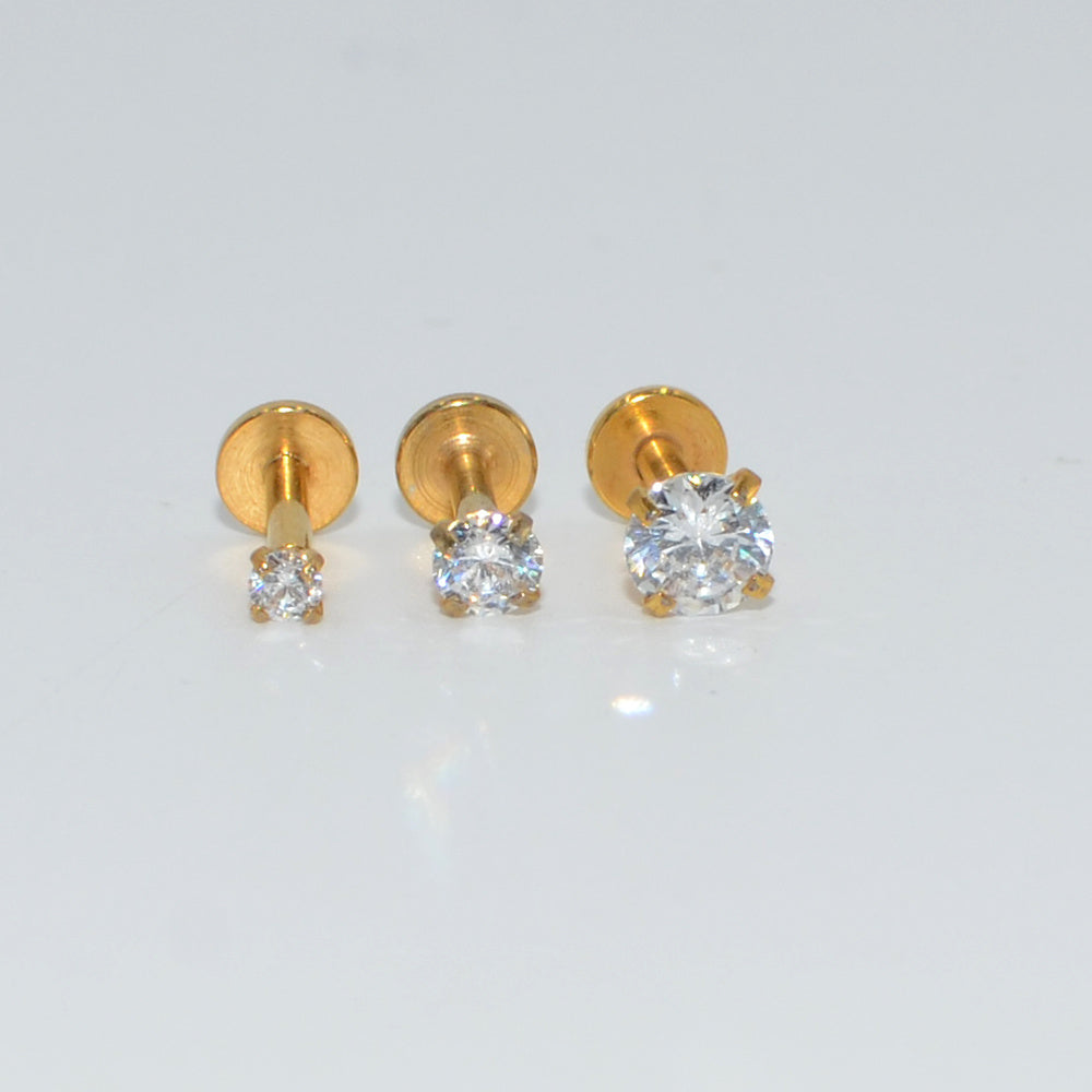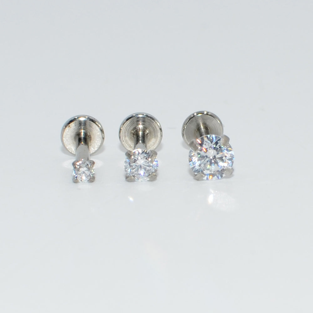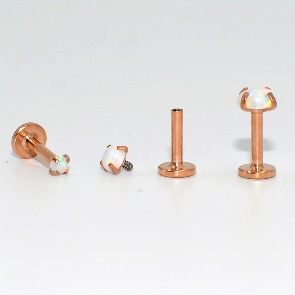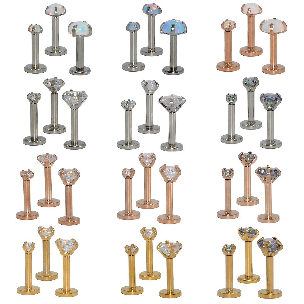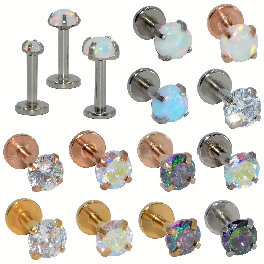 Upgrade your ear or lip piercings with this set of 3 internally threaded prong round opal zircon labret studs. Perfect for tragus, cartilage, and lip piercings.