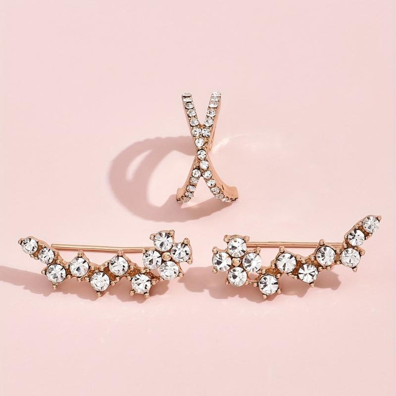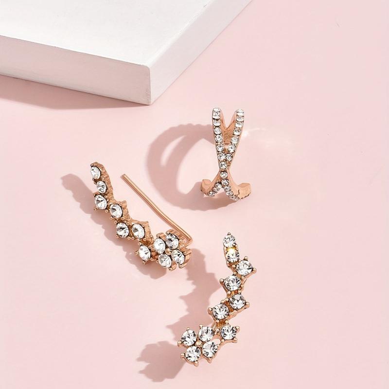 Add a touch of sparkle to your look with this set of 3 rhinestone ear clip earrings. Perfect for daily wear, parties, and proms, these earrings will elevate your style and add a touch of elegance to any outfit.