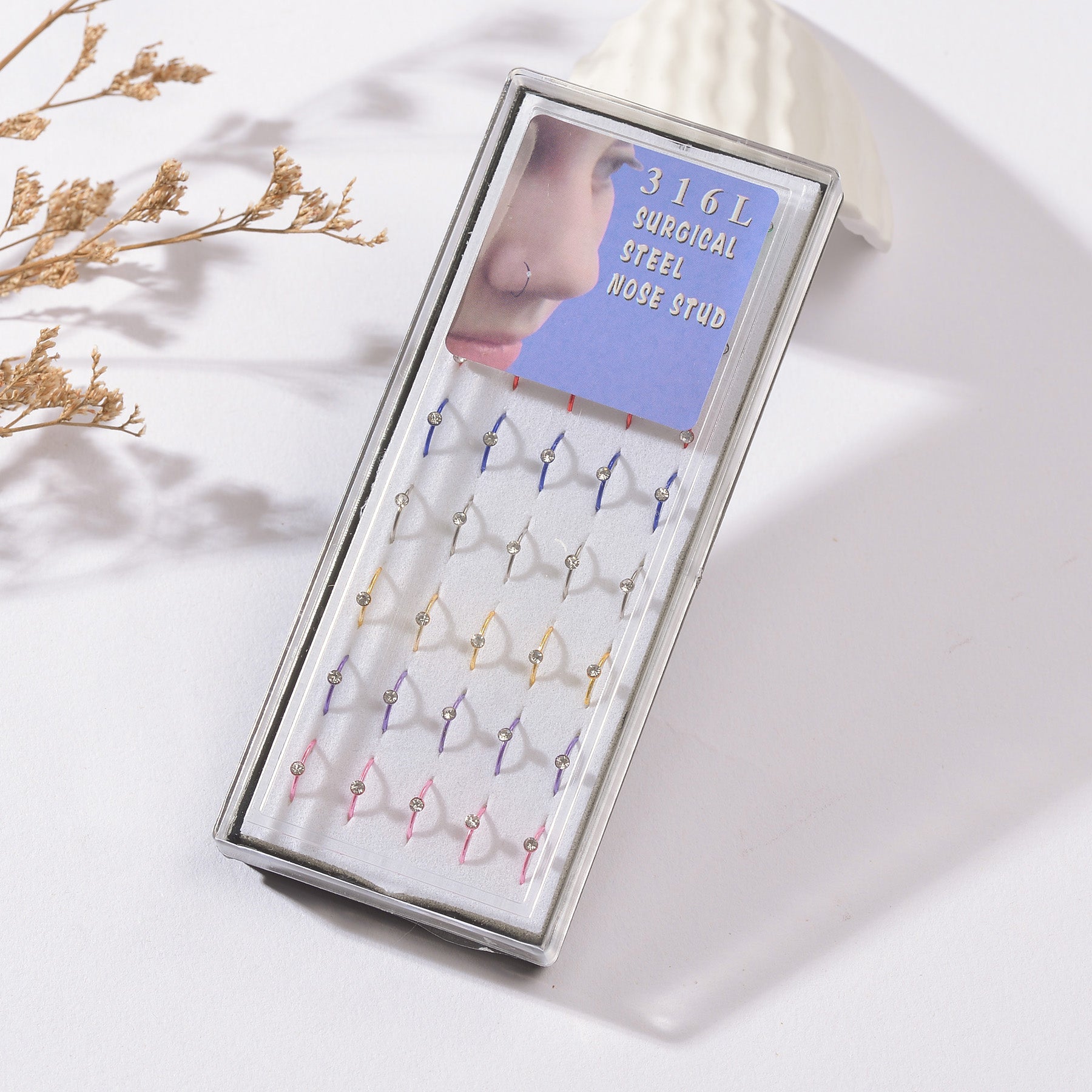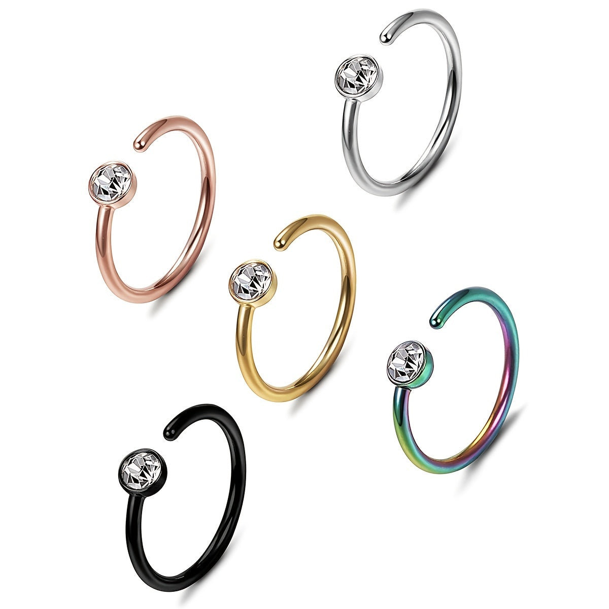 This set includes 40 nose rings hoops made of 316L surgical steel for durability and style. Perfect for tragus, septum, and cartilage piercings. Suitable for both men and women.
