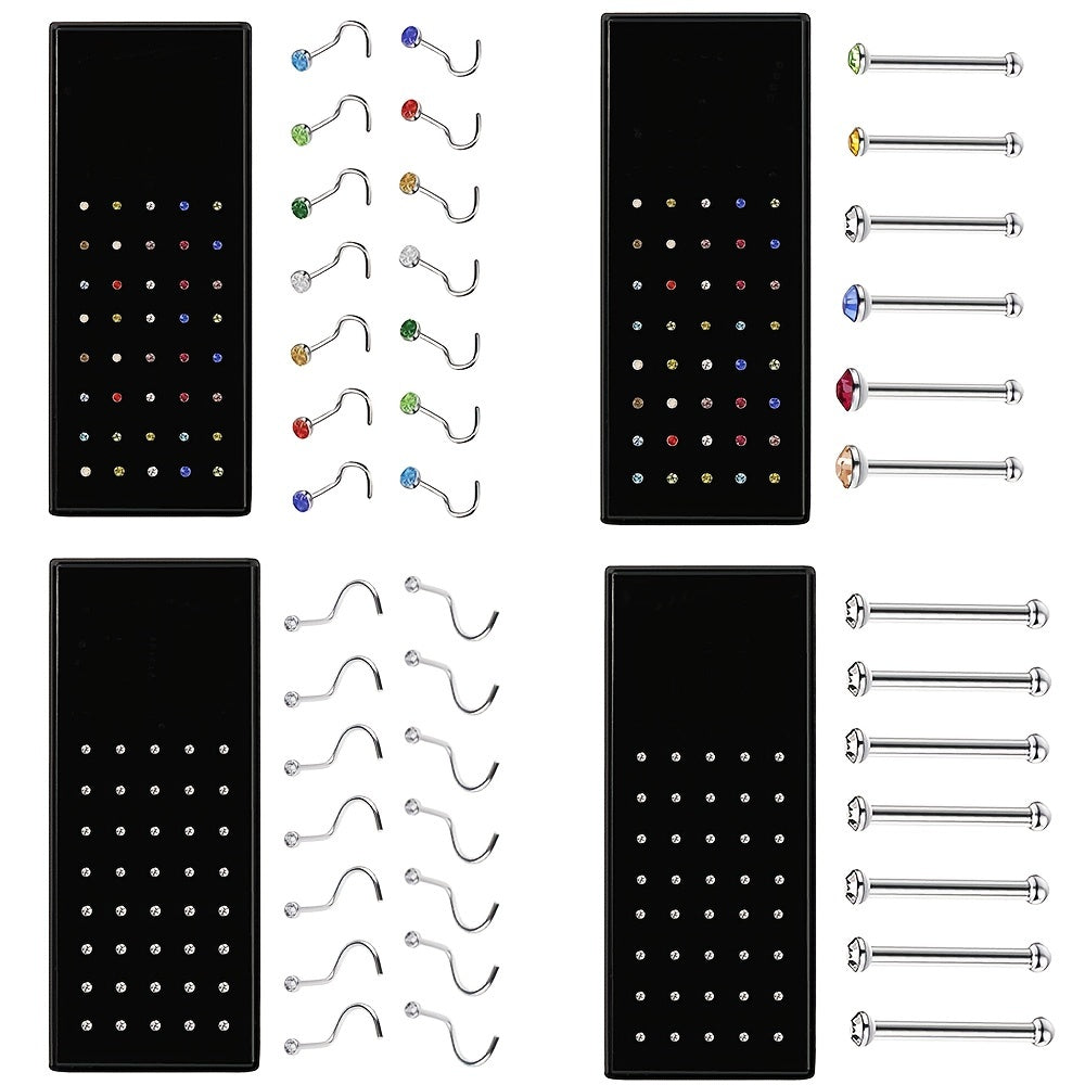 This set includes 40 pieces of nose ring jewelry made of stainless steel, suitable for men. The S shape nose studs are hypoallergenic and can be used as nose rings or earrings.