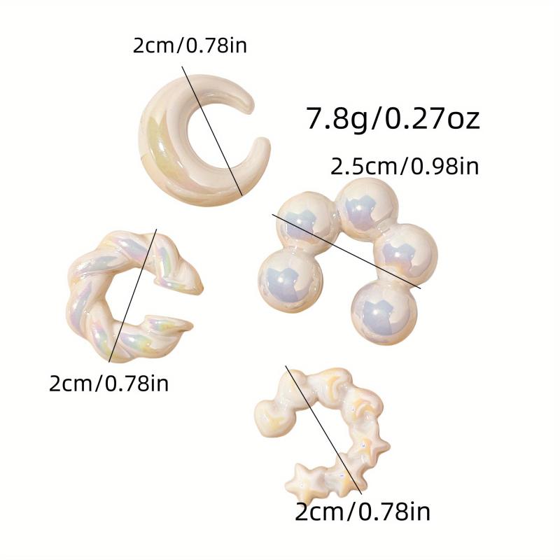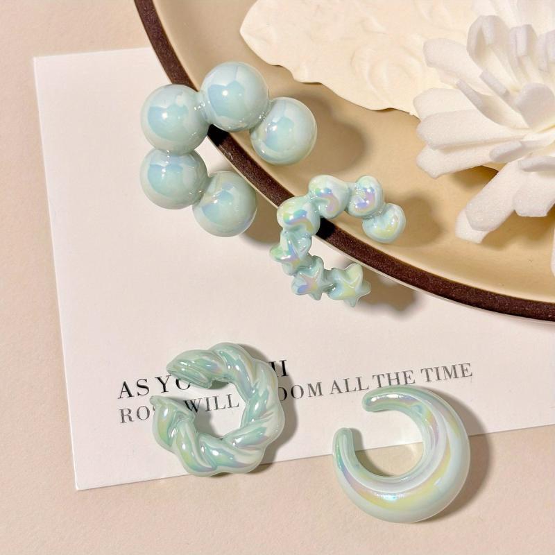 Add a touch of glamour with these glossy, no-piercing ear bone clips. The set features niche irregular flower, thread, star, and heart designs.
