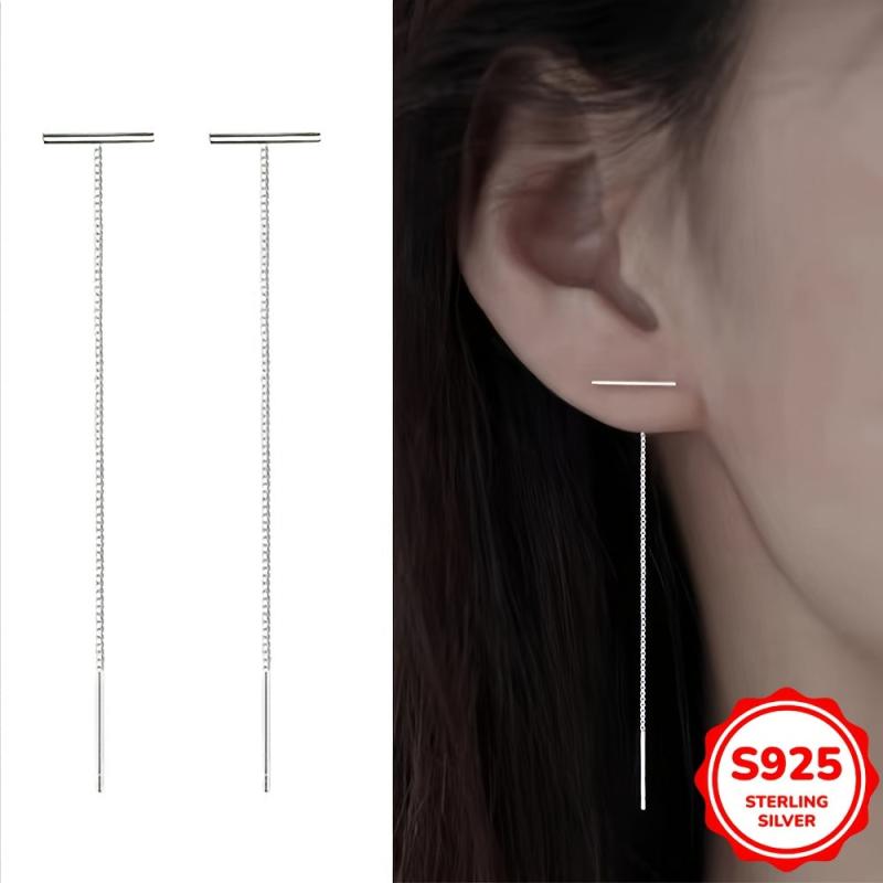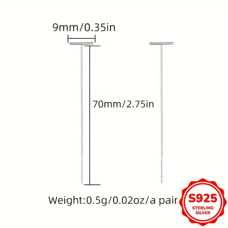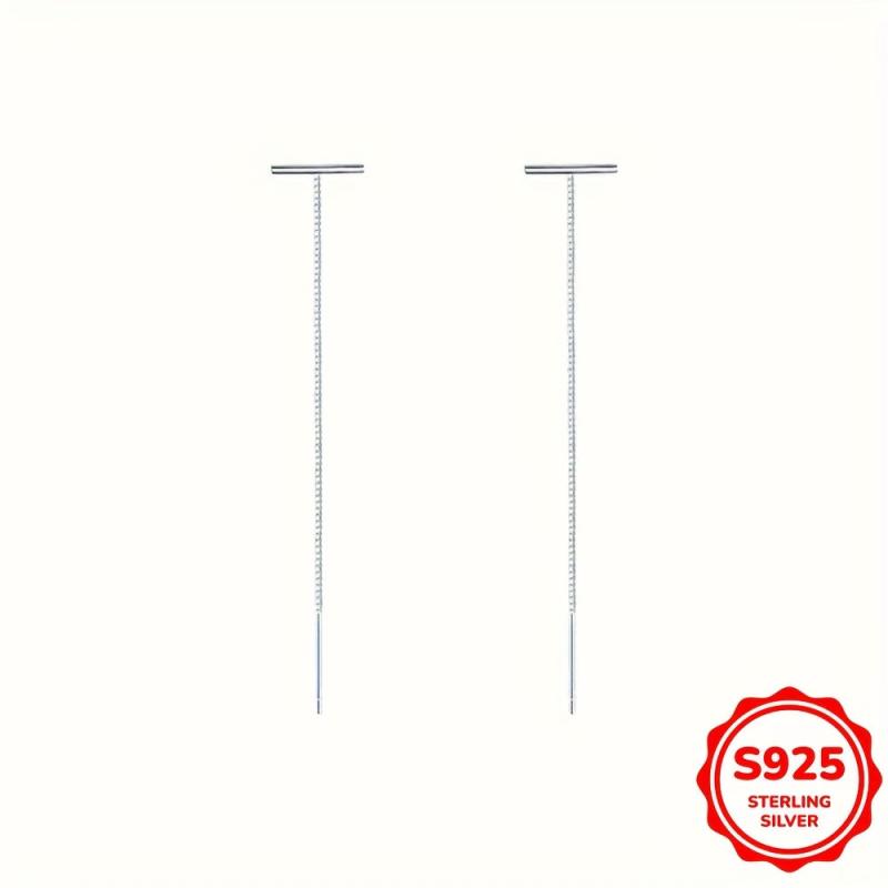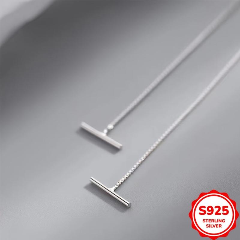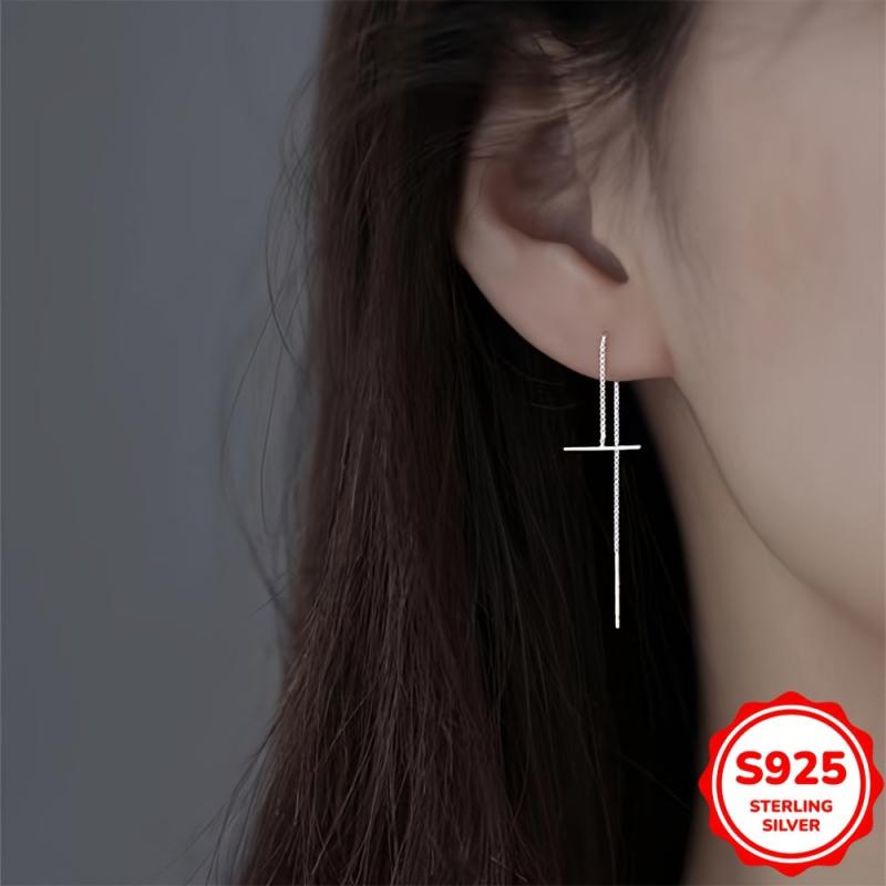 These elegant earrings are crafted from S925 pure silver and feature a long T-shaped design. Perfect for slimming the face and adding a touch of sophistication to any outfit. Makes a versatile and stylish birthday gift.