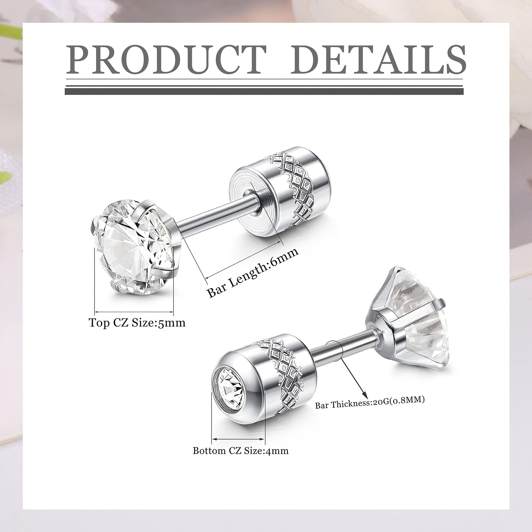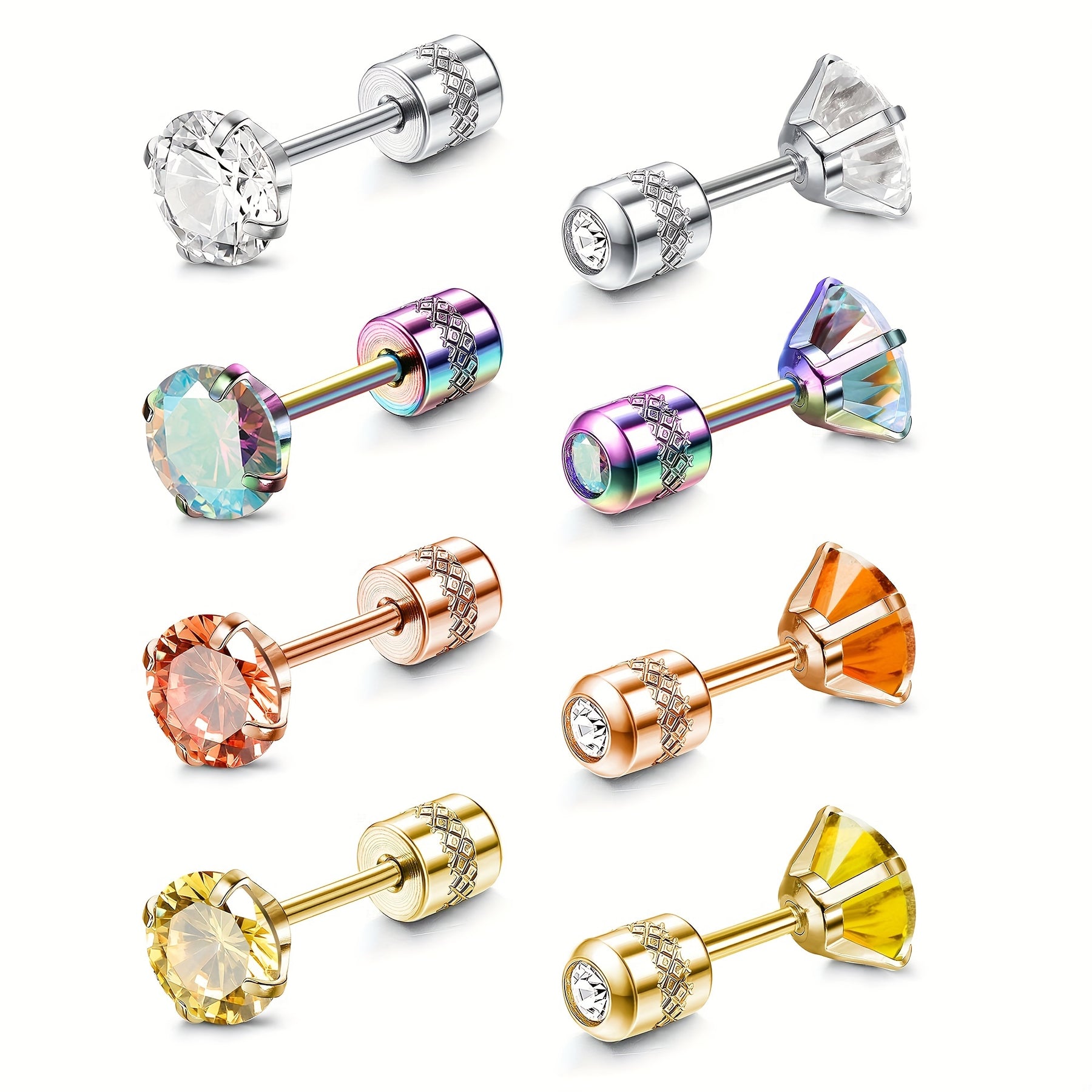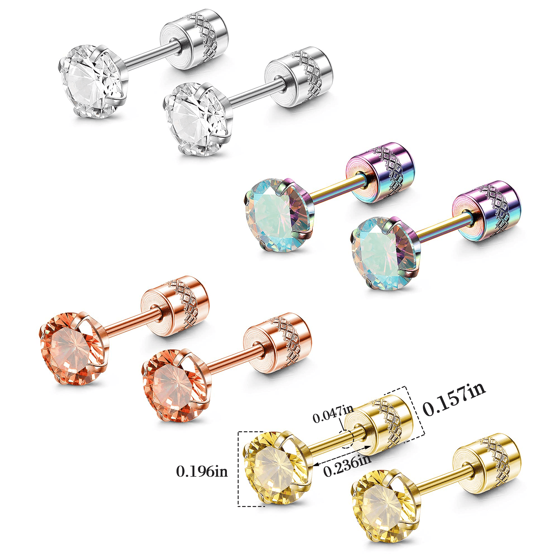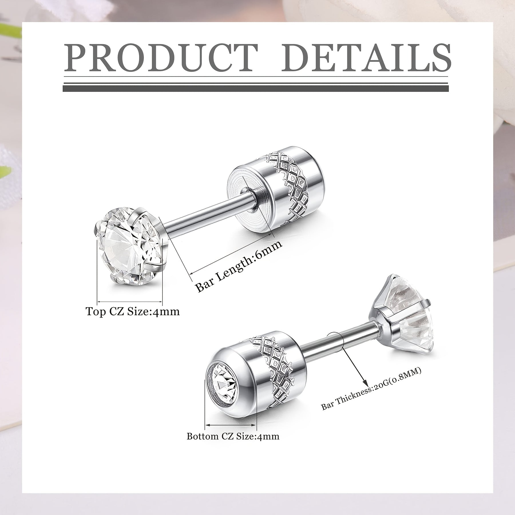 Get this set of 4 pairs of stainless steel stud earrings with double round cubic zirconia for women. The tiny cartilage earring studs come with screw back piercings.