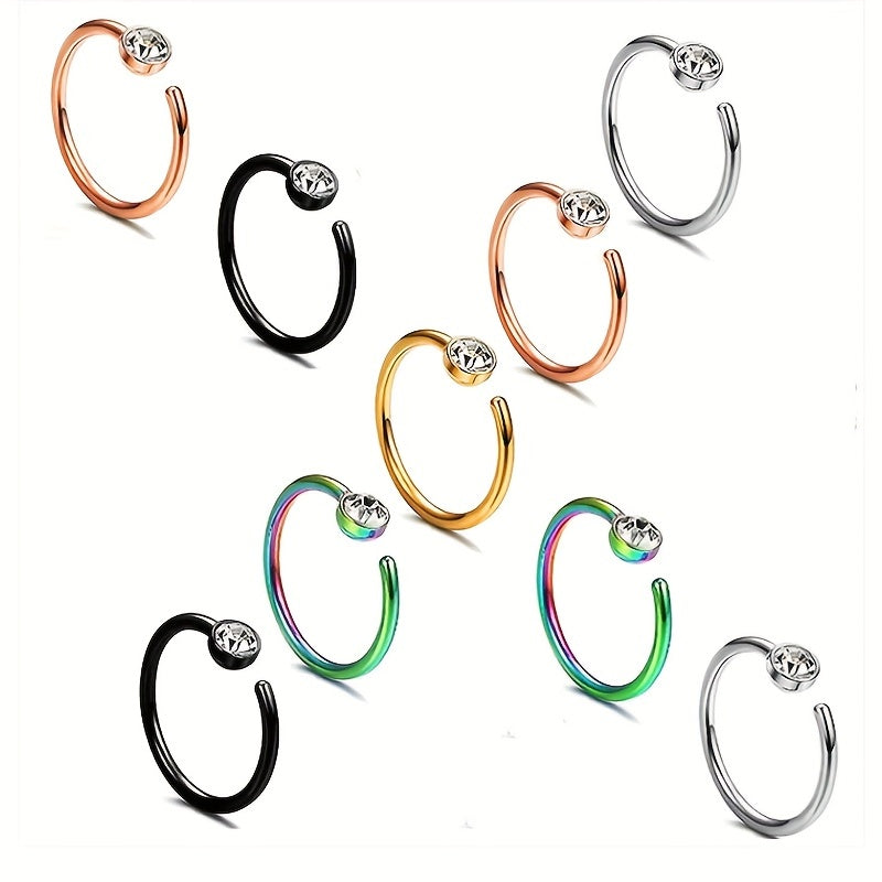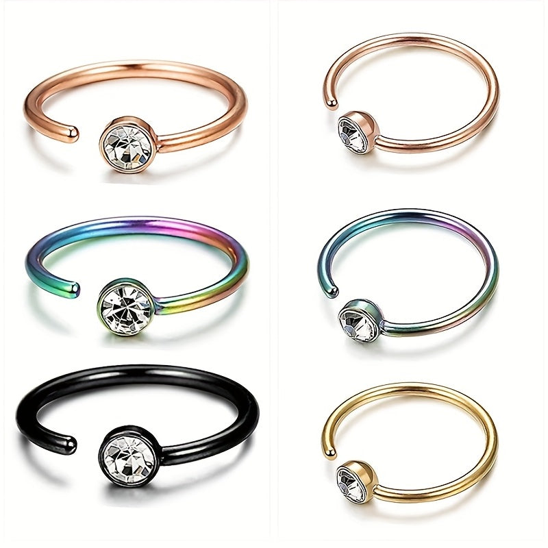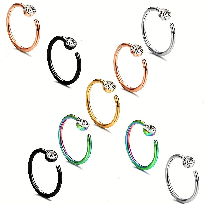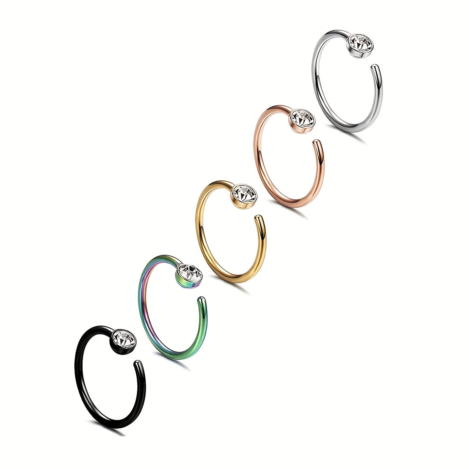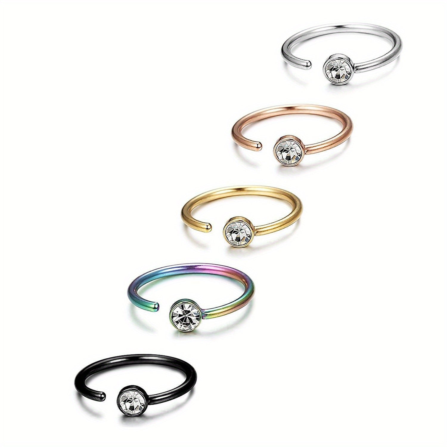 This set includes 5 hoop nose rings with zircon inlay, made of high-quality 316L stainless steel. Ideal for body piercing and can also be used as stud earrings.