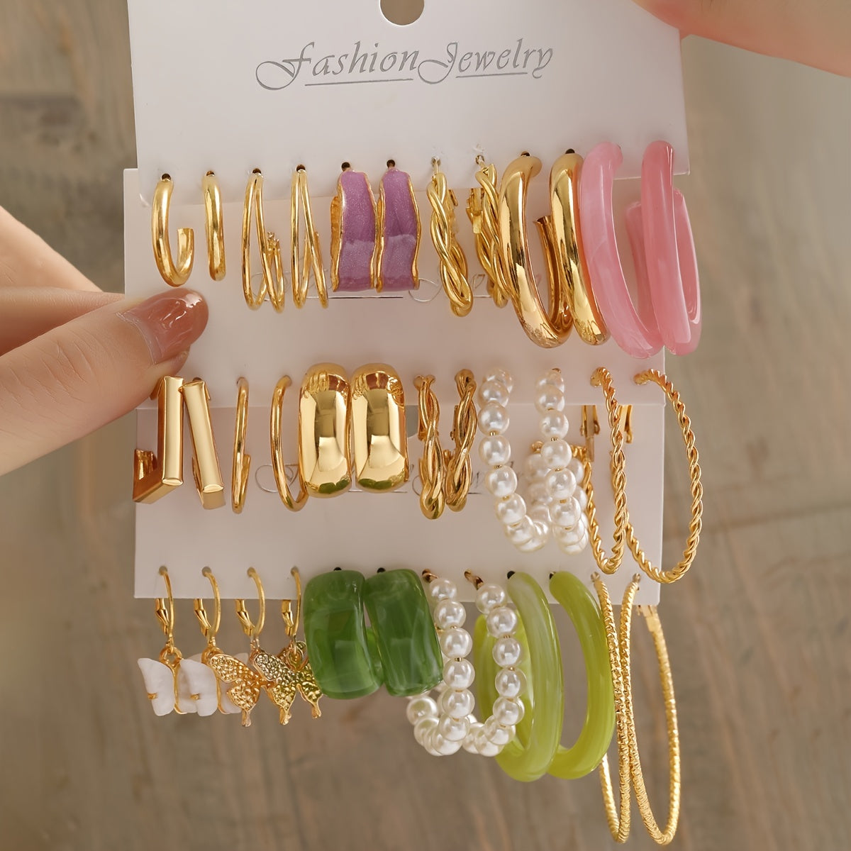 Add a touch of elegance with this 6-pair set of zinc alloy resin faux pearl hoop huggie earrings. Perfect for any occasion or as a birthday gift for women and girls.