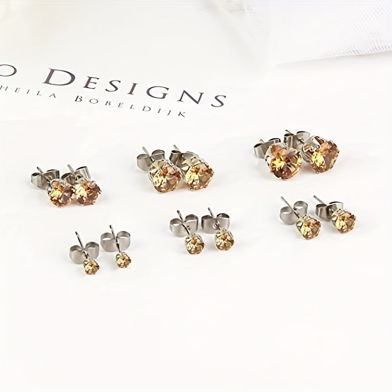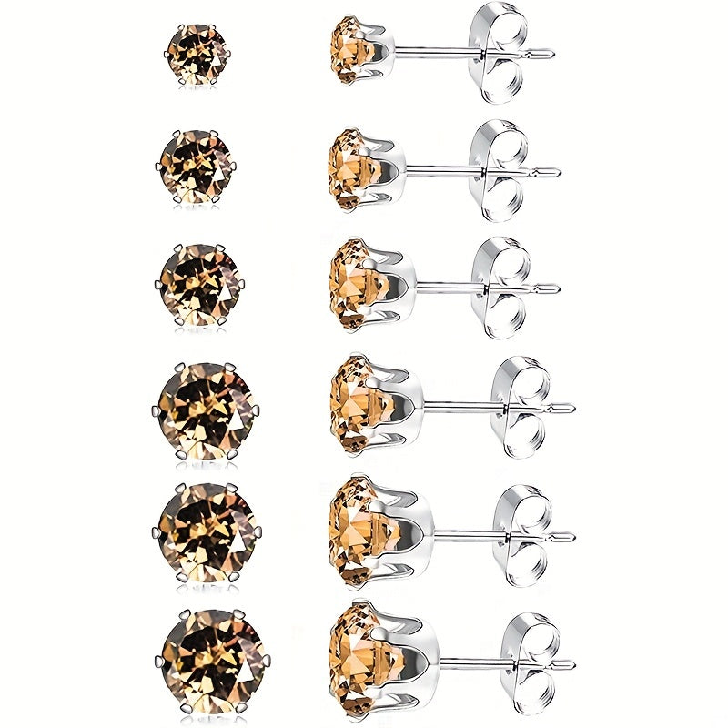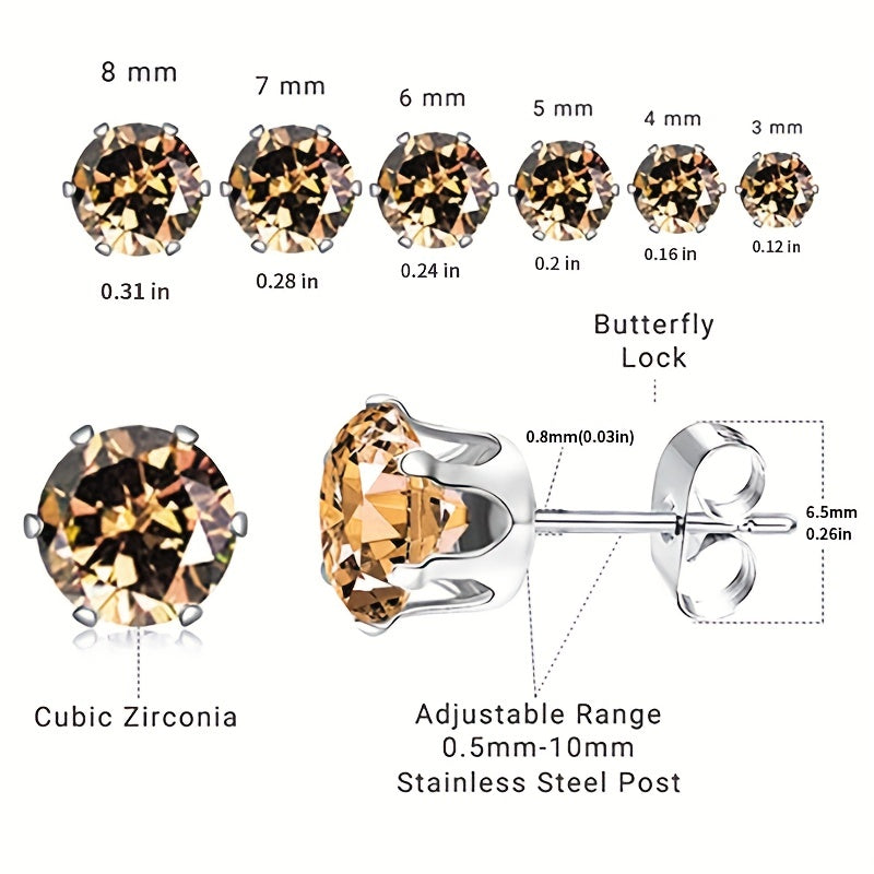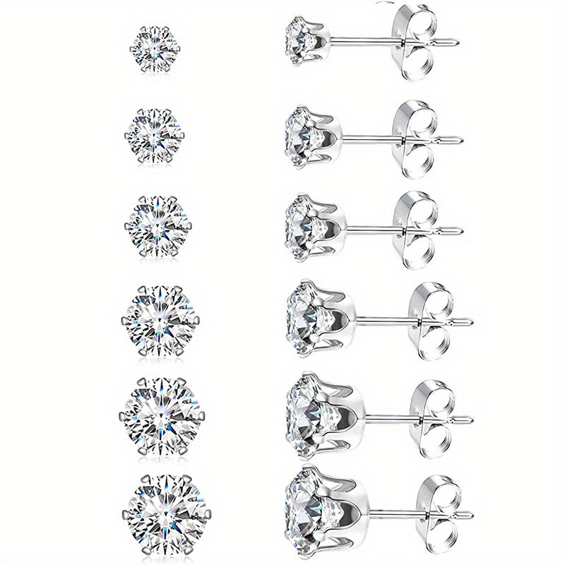 Get this set of 6 pairs of 8mm cubic zirconia earrings for men and women. Made of anti-tarnish stainless steel, these earrings are durable and stylish.