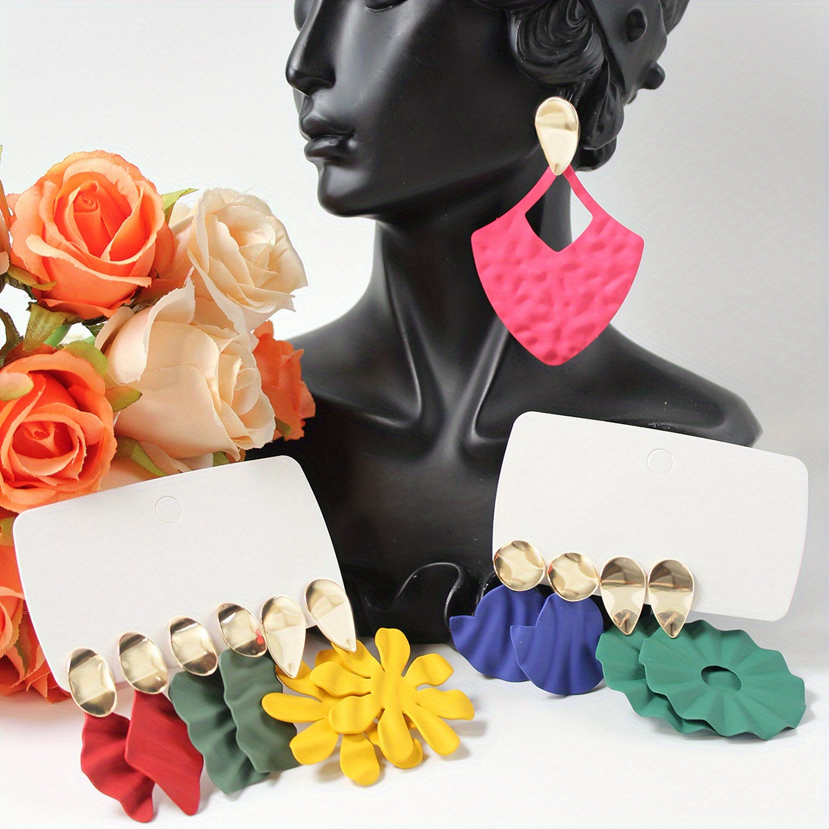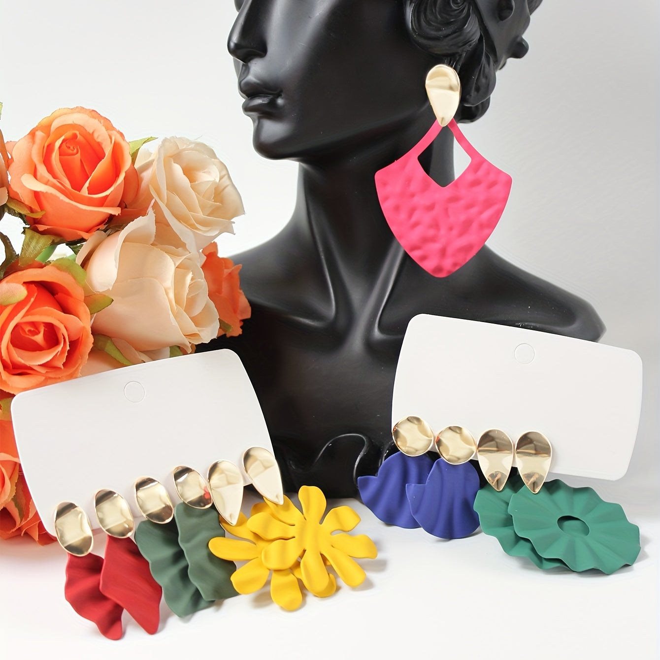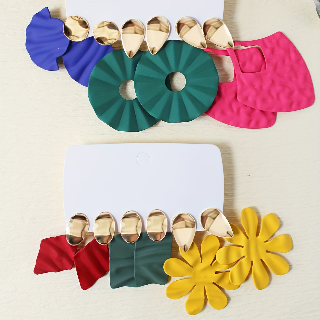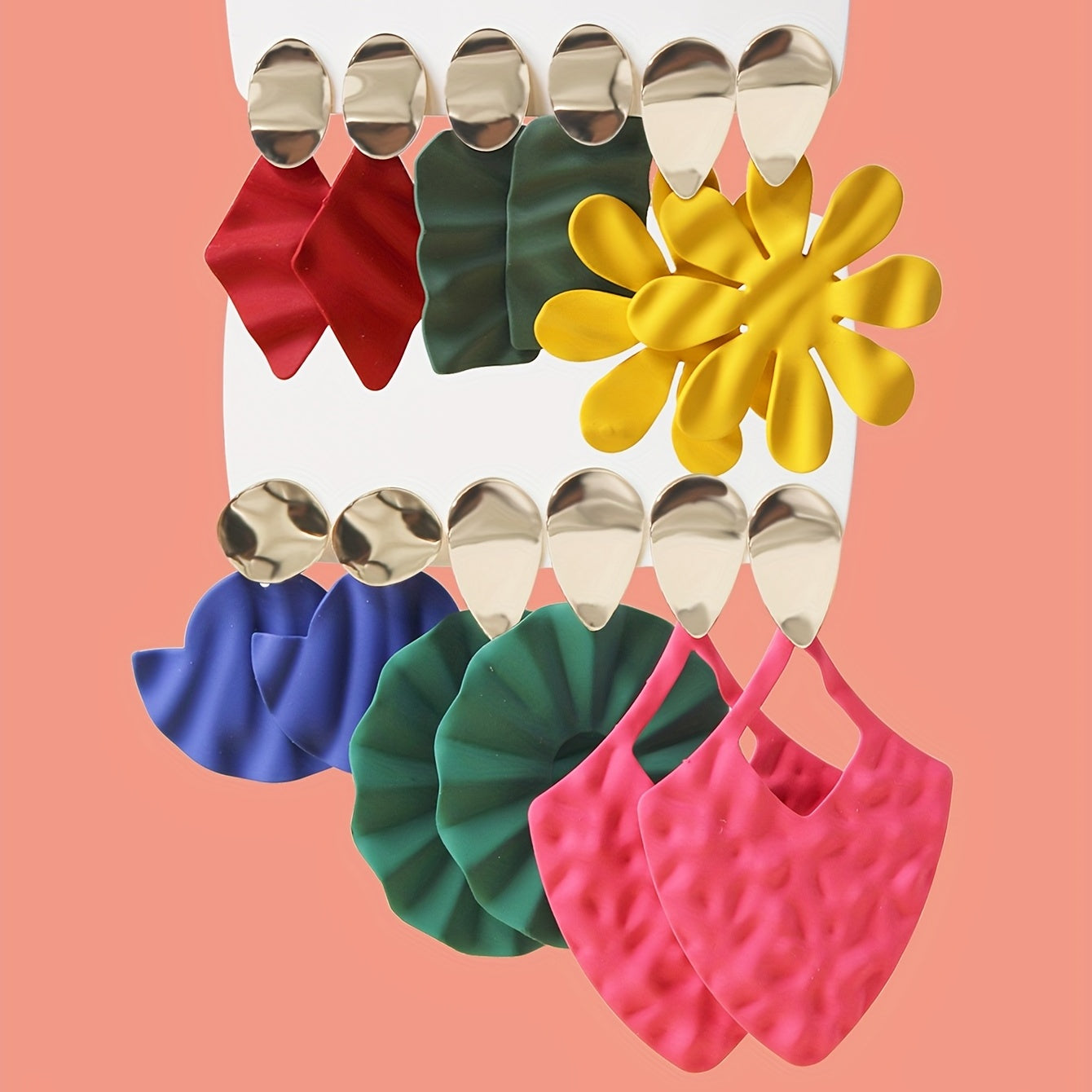 This set includes 6 pairs of colorful dangle earrings designed in vocation style with iron and 18K plated material. Delicate jewelry gift for women.