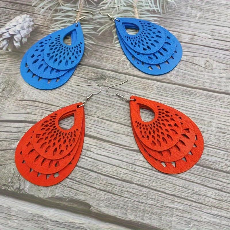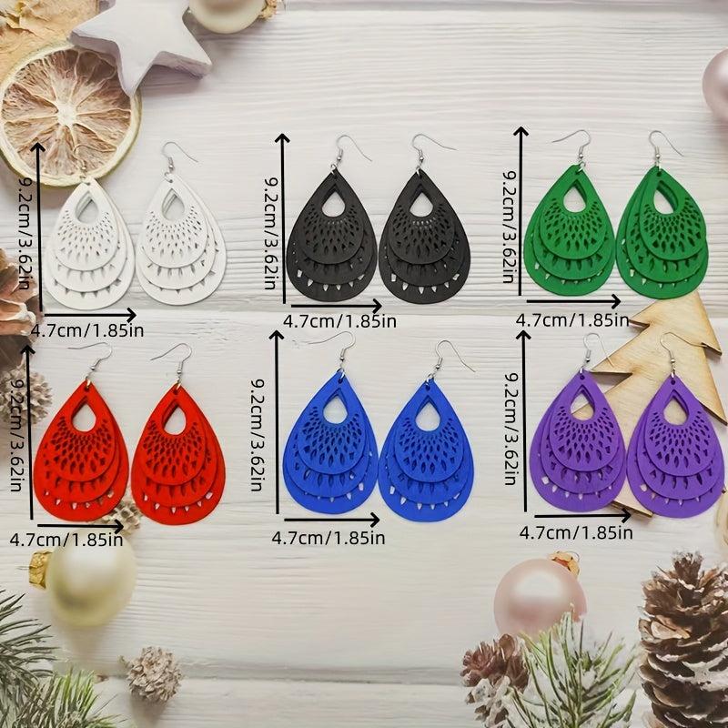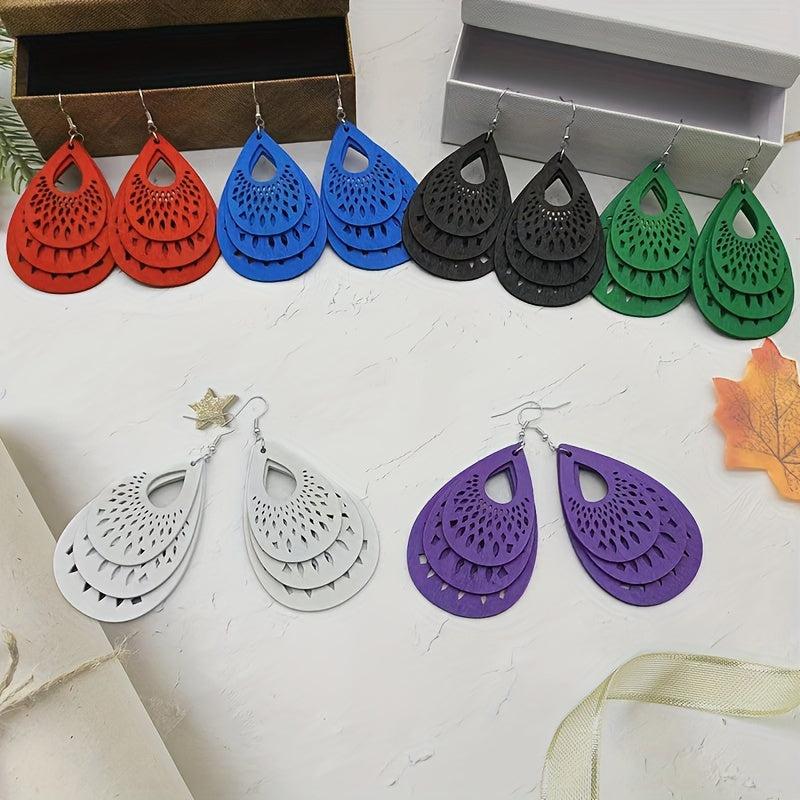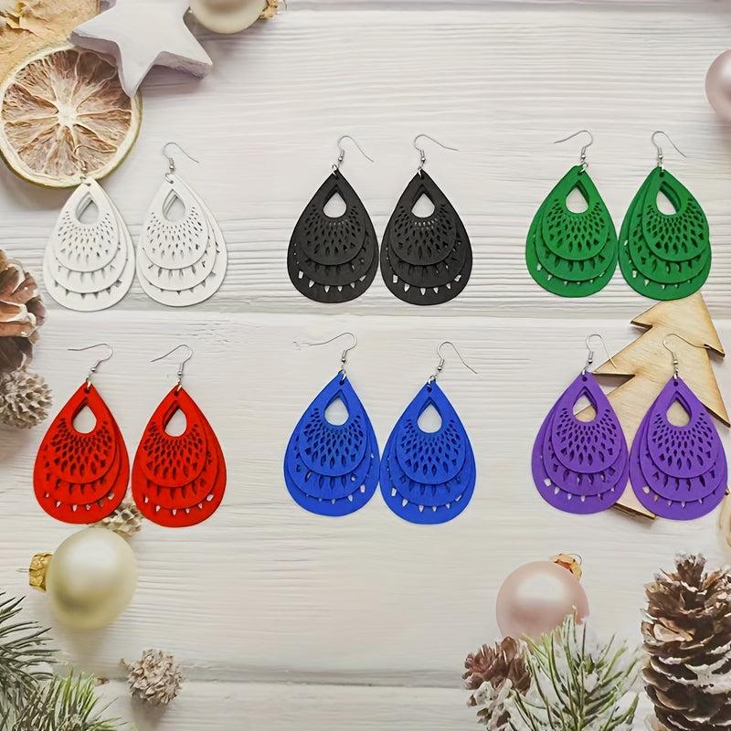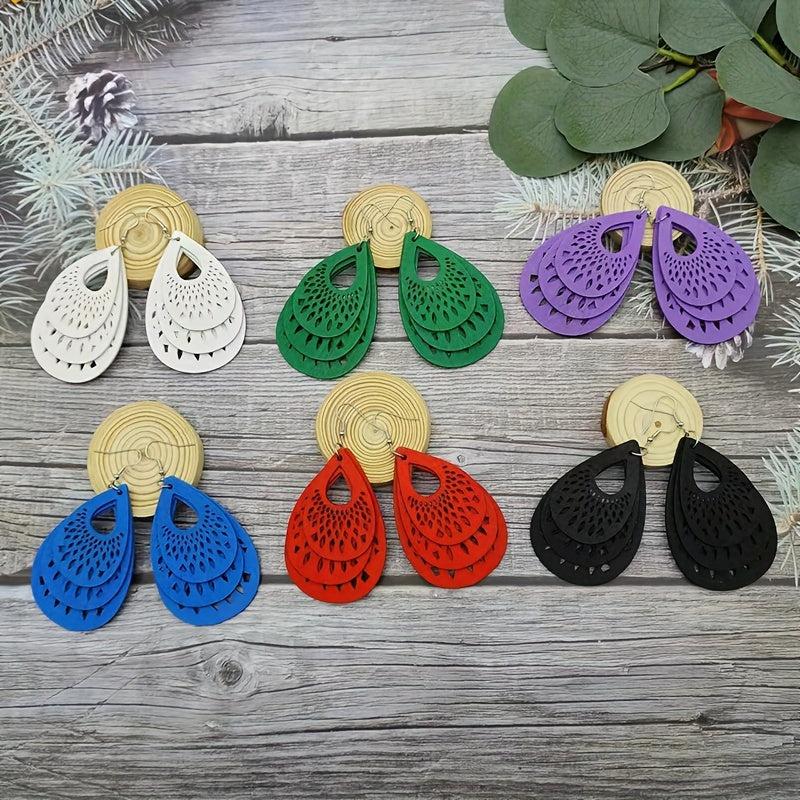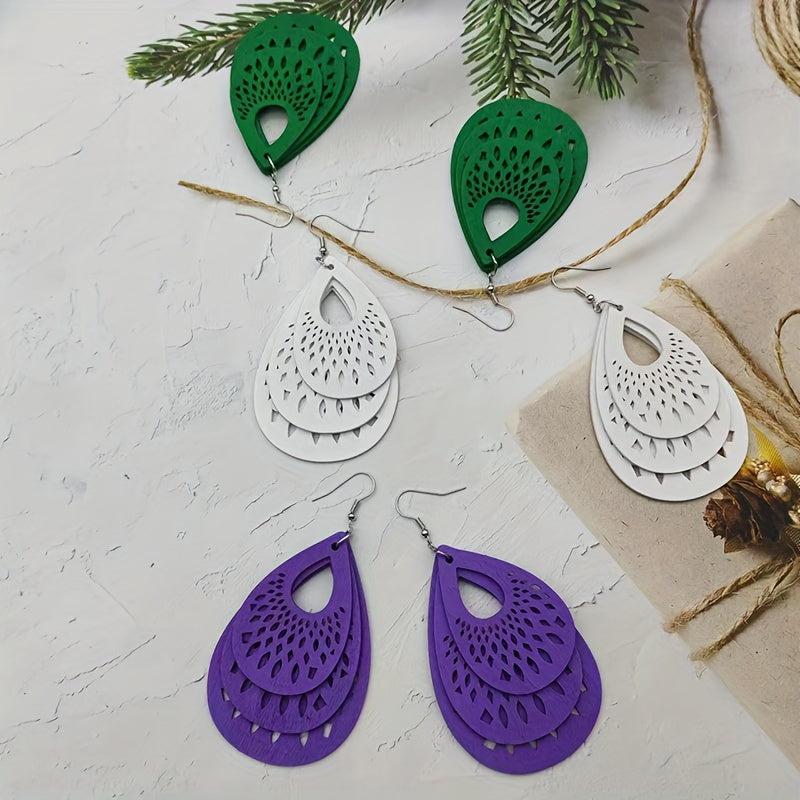 Set of delicate droplet shape earrings with hollow pattern. Perfect for females who love a retro style.