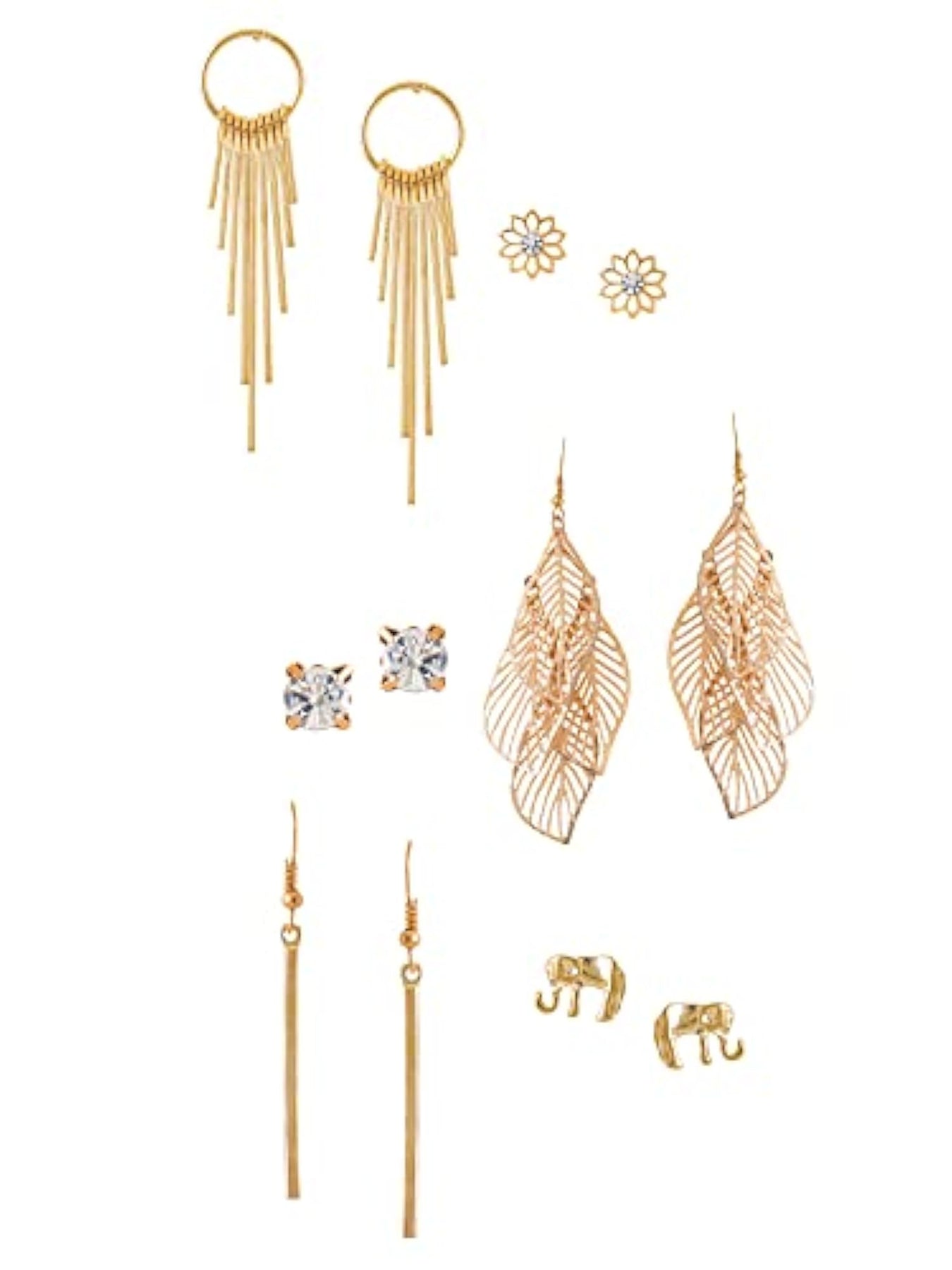 Set of 6 pairs of earrings, including studs and danglers. Perfect gift for birthday, anniversary, or any special occasion. Ideal for girls, women, and wives.