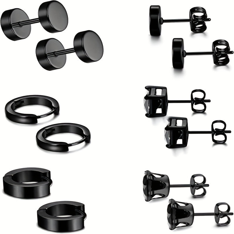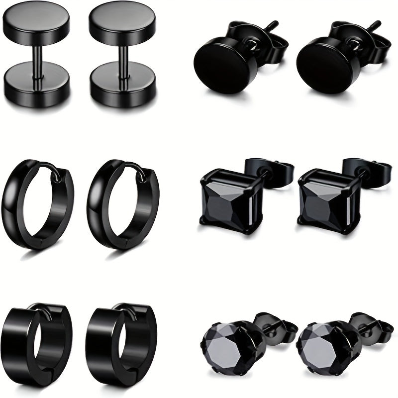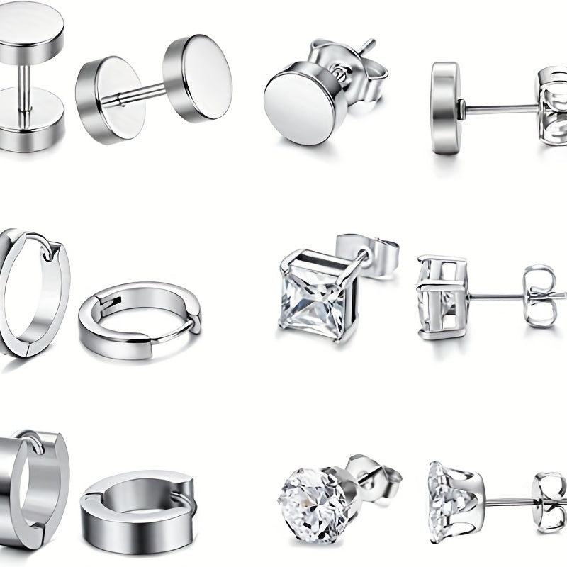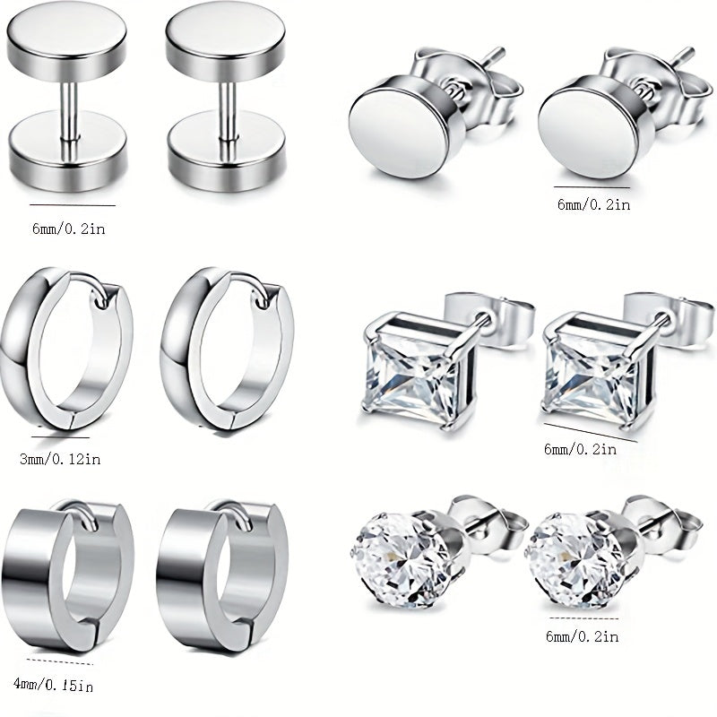 These stainless steel stud earrings feature artificial diamonds, making them a great gift for couples. The set includes 6 pairs of earrings in various styles.
