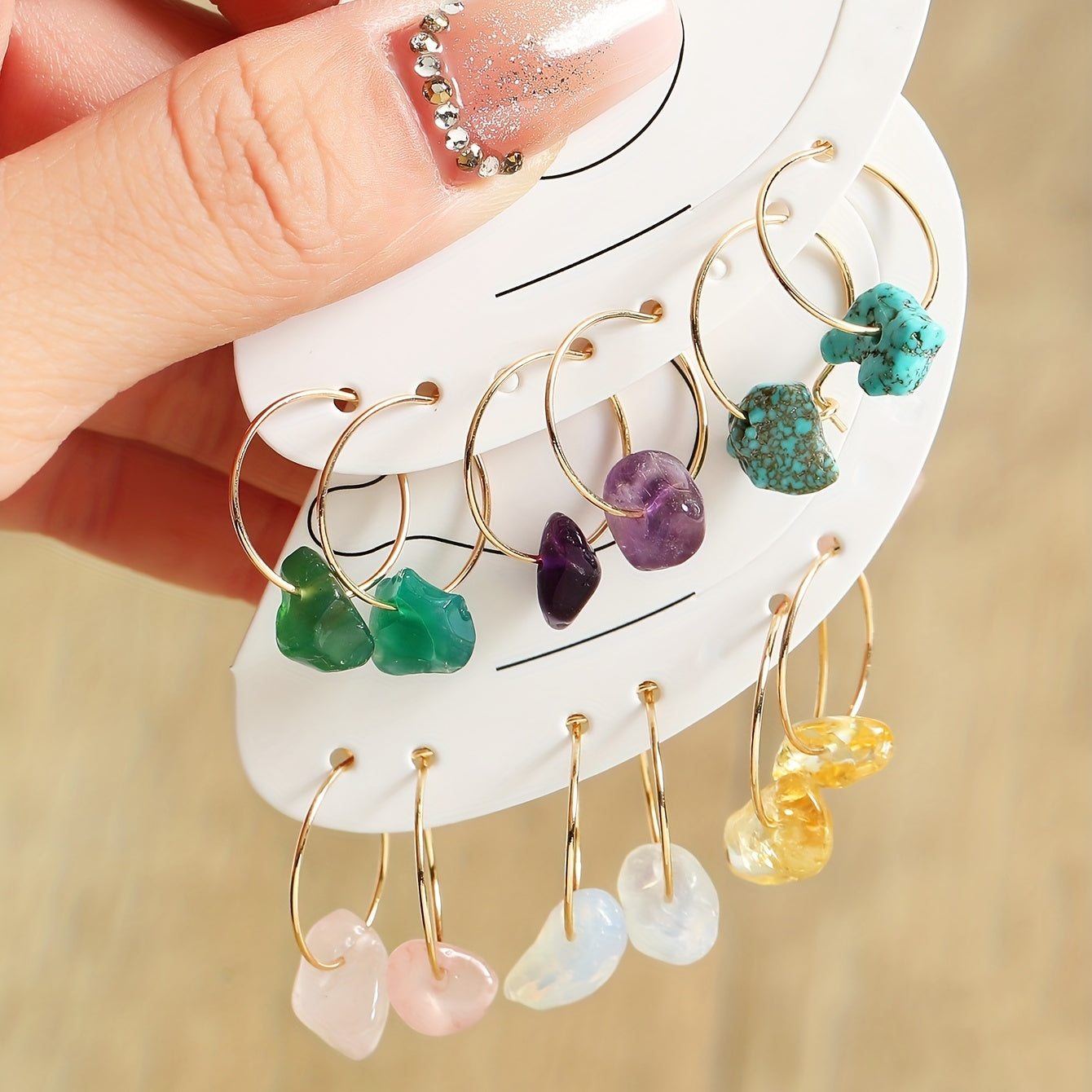 Enhance your style with these unique natural raw stone hoop earrings. Perfect gift for someone with a creative personality.