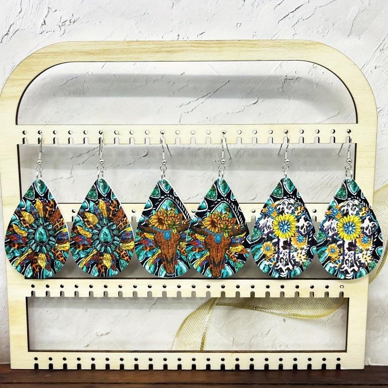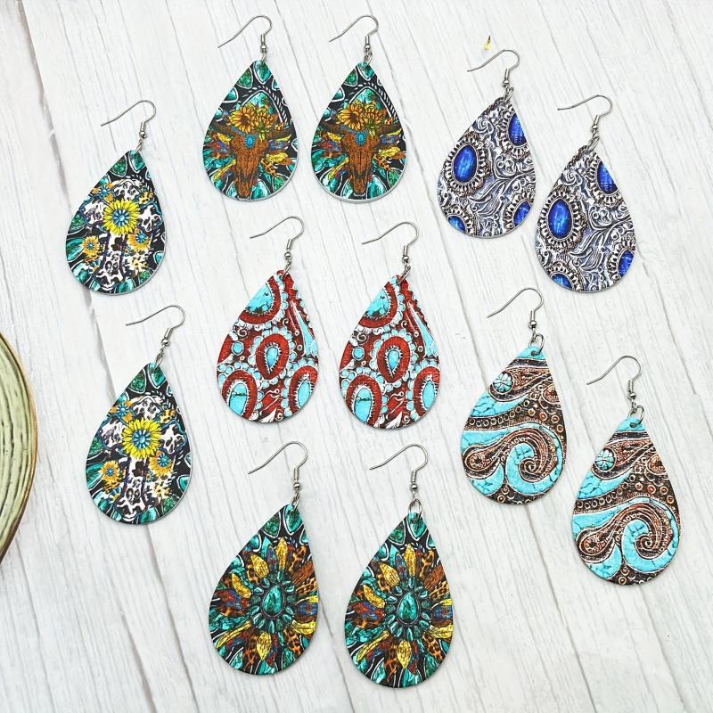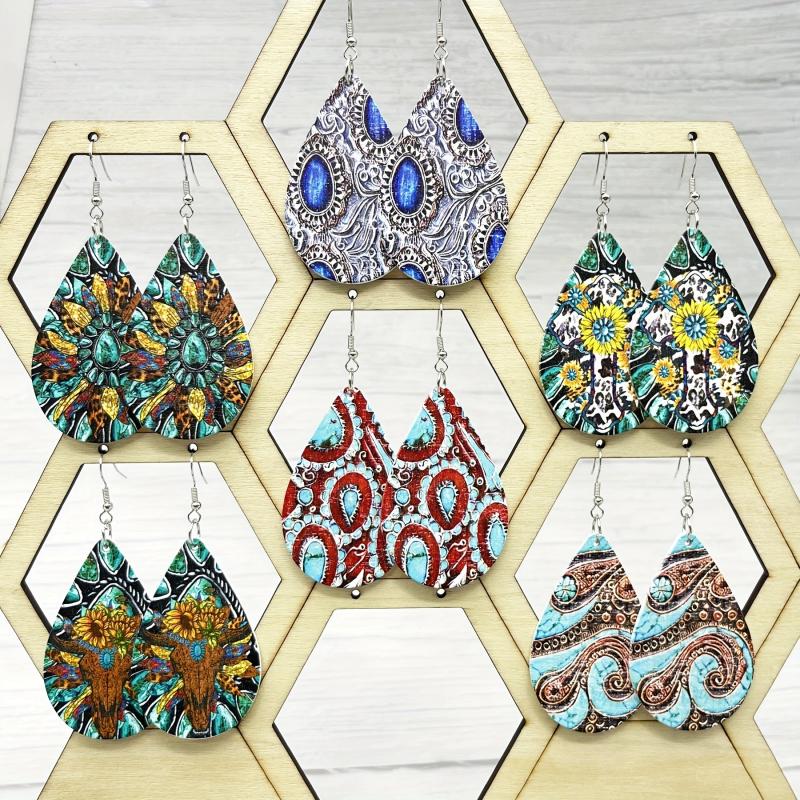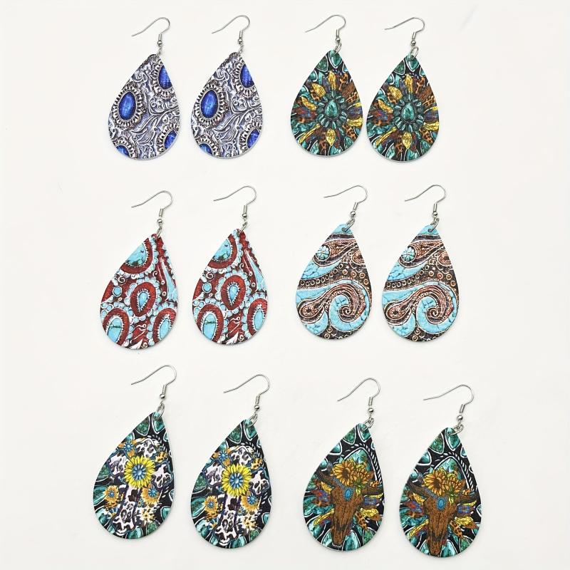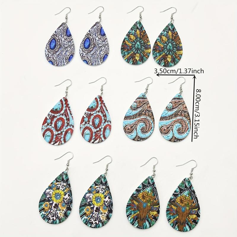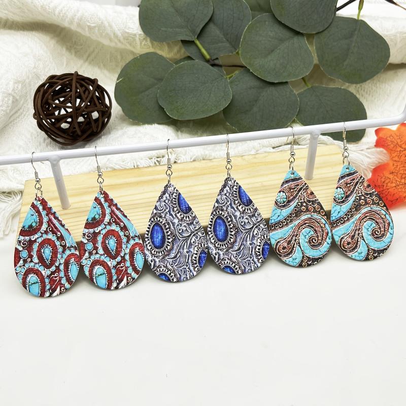 Enhance your style with these beautiful wooden teardrop earrings featuring retro print floral and geometric patterns. They come with iron hooks for easy wear and a unique look.
